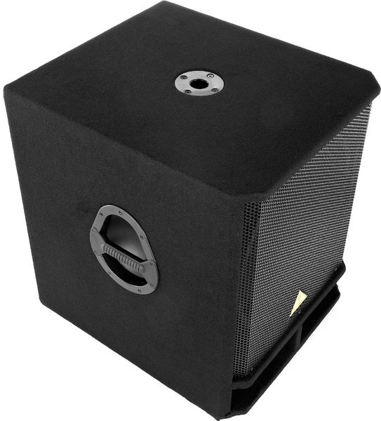 Корпус динамика допускает установку и в помещении, и вне его. Весит устройство 41,4 кг, и чтобы облегчить его транспортировку, конструкторы предусмотрели широкие удобные ручки. Устанавливать сабвуфер можно как напольно, так и на стойку – соответствующий адаптер-«стакан» встроен в корпус. Кроме того, спереди излучатель защищён от механических повреждений перфорированной стальной решёткой.