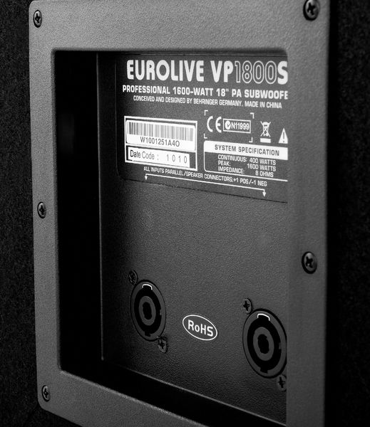 EuroLive VP1800S – сабвуфер, помещённый в качественный корпус концертного типа, эффективно использующий всю интенсивность звука, какую только способен выдать излучатель. Этот корпус относится к рупорной категории и создаёт равномерный монополярный звуковой фронт, что наилучшим образом подходит для выступлений как в помещении, так и на открытом воздухе. В роли излучателя выступает мембрана диаметром 18 дюймов, закреплённая на корпусе длинноходного драйвера.