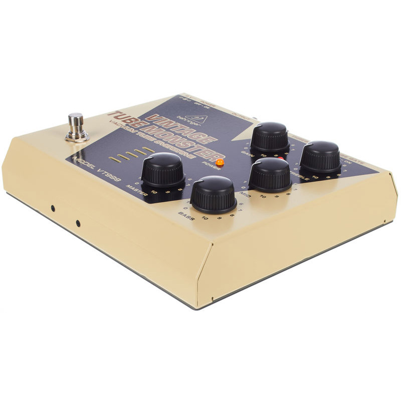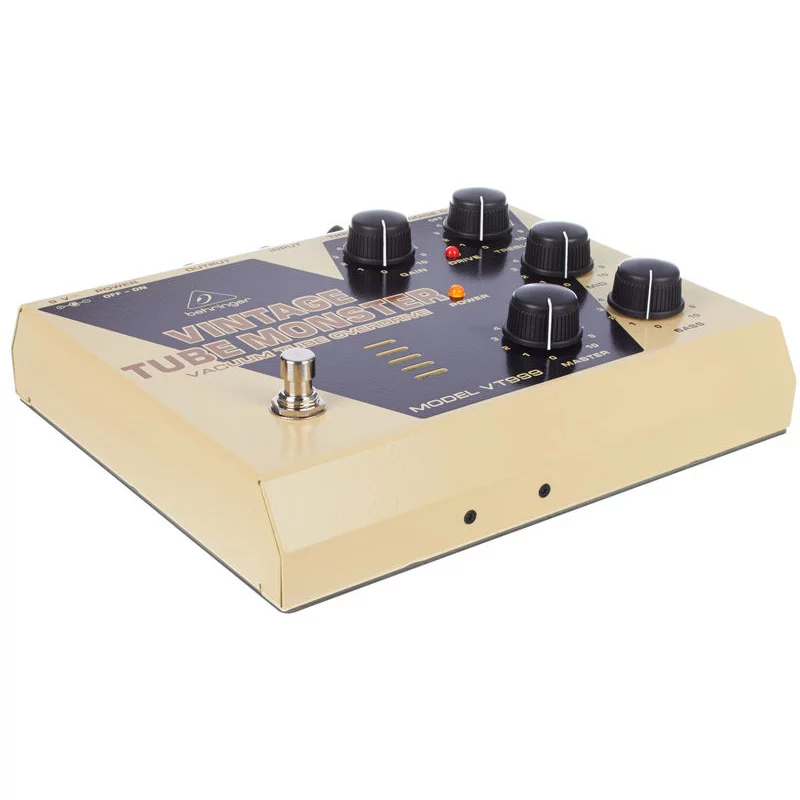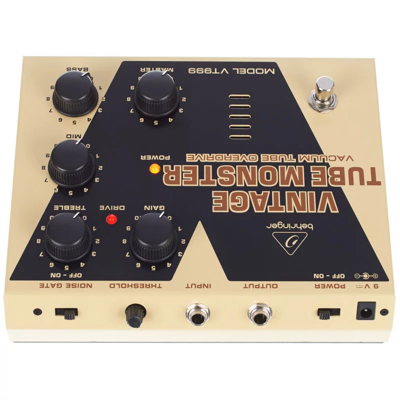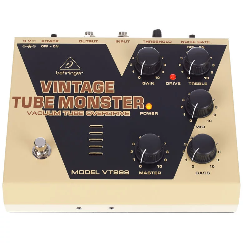Behringer VT 999 VINTAGE TUBE MONSTER - педаль классического лампового овердрайва с отобранной вакуумной лампой 12AX7. Целая коллекция тембров лампового усилителя в одной педали - все от теплого блюзового овердрайва до тяжелого дисторшн.