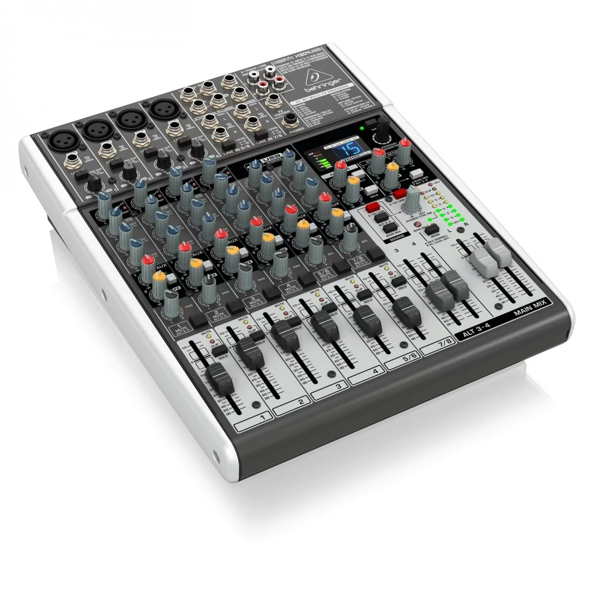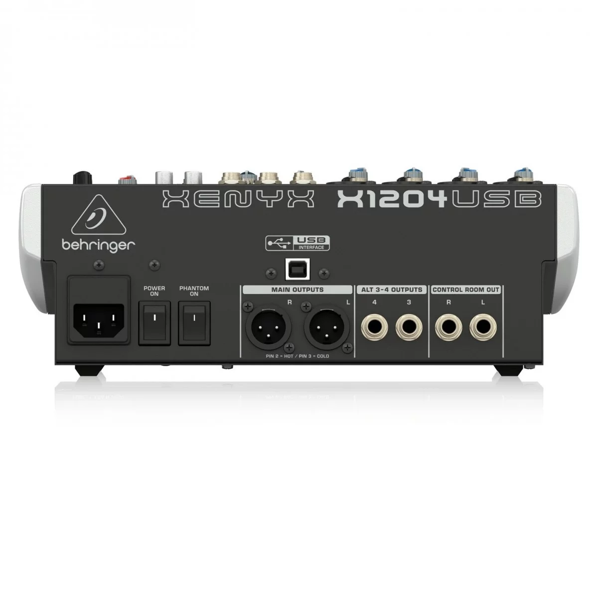 XENYX X1204USB имеет 8 основных канальных входов: 4 монофонических и 2 пары стереофонических. Кроме этого предусмотрено 2 стереоканала для ALT 3-4 шины. 4 микрофонных входа совместимы с динамическими и конденсаторными микрофонами, поскольку микшер имеет функцию отключаемого фантомного питания. Во избежание появления паразитарных шумов микрофонная секция оснащена фильтрами низких частот, а для предварительной нормализации звука вокала или инструмента имеются фирменные предусилители Behringer.