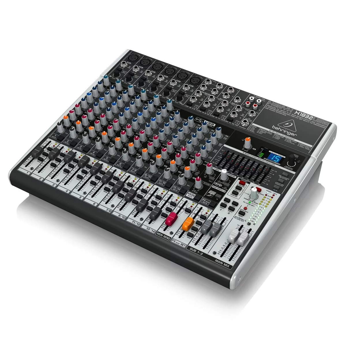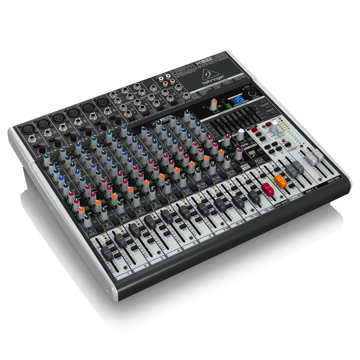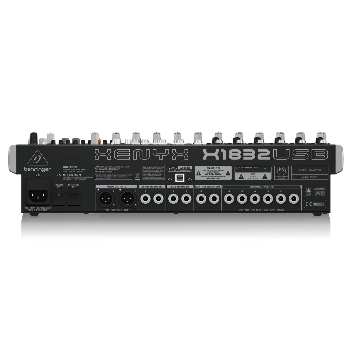 В XENYX X1832USB установлен 24-битный эффект-процессор, поддерживающий редактирование 16 программ обработки, оснащённый светодиодным дисплеем и индикаторами громкости. Более продвинутую модернизацию сигнала можно провести на компьютере, к которому микшер подключается по встроенному USB-интерфейсу. Приложение для обработки звука, а также инструментальные плагины и эффекты можно бесплатно скачать с сайта Behringer.