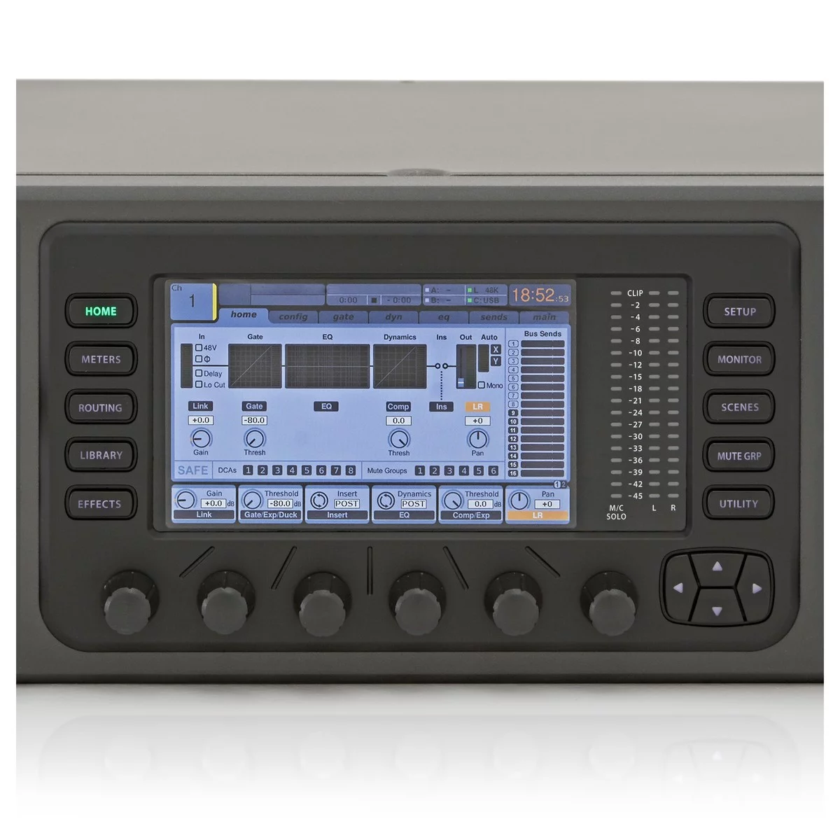 Собственный функционал устройства включает в себя поддержку групп каналов, 6-полосные параметрические эквалайзеры, эмуляцию популярных моделей эффект-процессоров и создание собственных эффектов, причём всё это реализовано через минимальное количество физических контроллеров. Благодаря такому подходу освоение DIGITAL MIXER X32 RACK происходит быстро и беспроблемно.