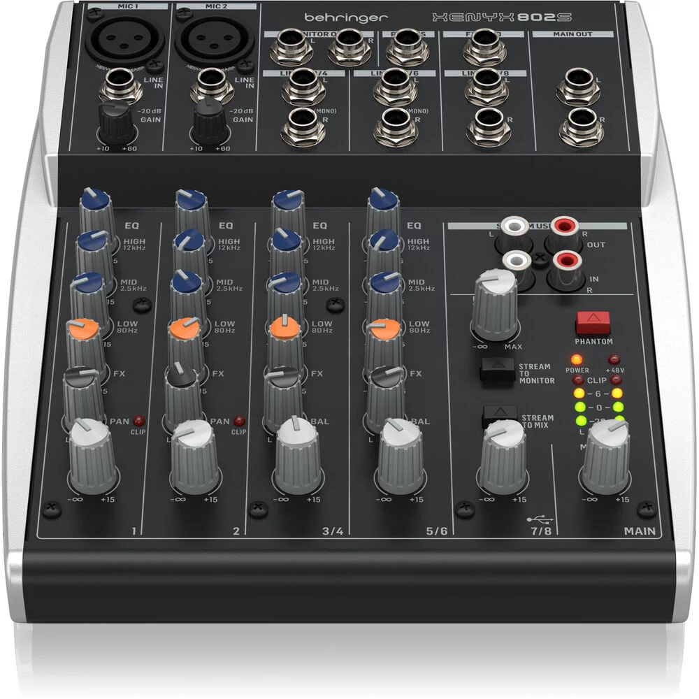 аналоговый микшер 8 каналов, вход 2хXLR, линейные входы 6x1/4" TRS, USB