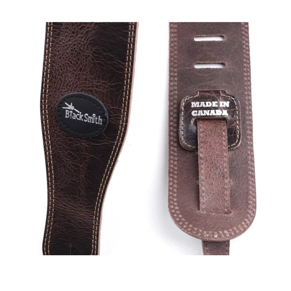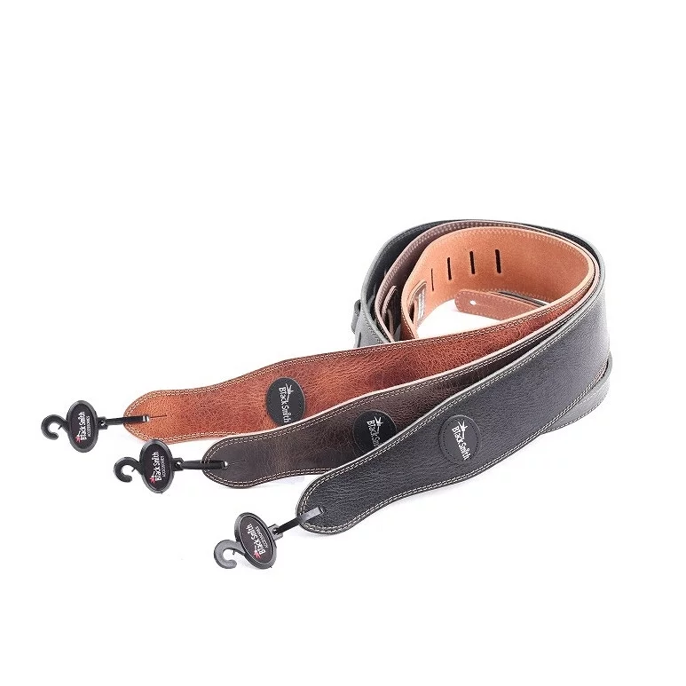 ремень для гитары, кожа, 55 мм, коричневый, толстый, со стяжком, кругл концы