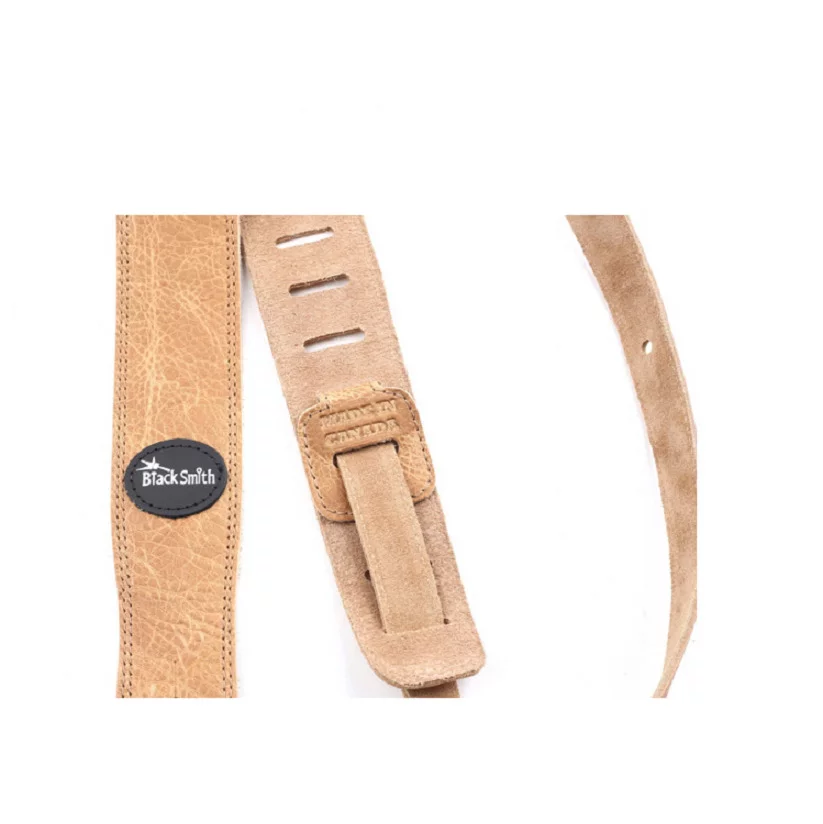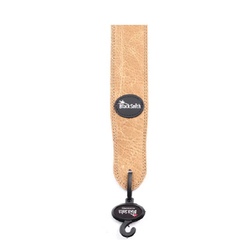 ремень для гитары, кожа, 55 мм, смугло-белый, толстый, со стяжком, кругл концы