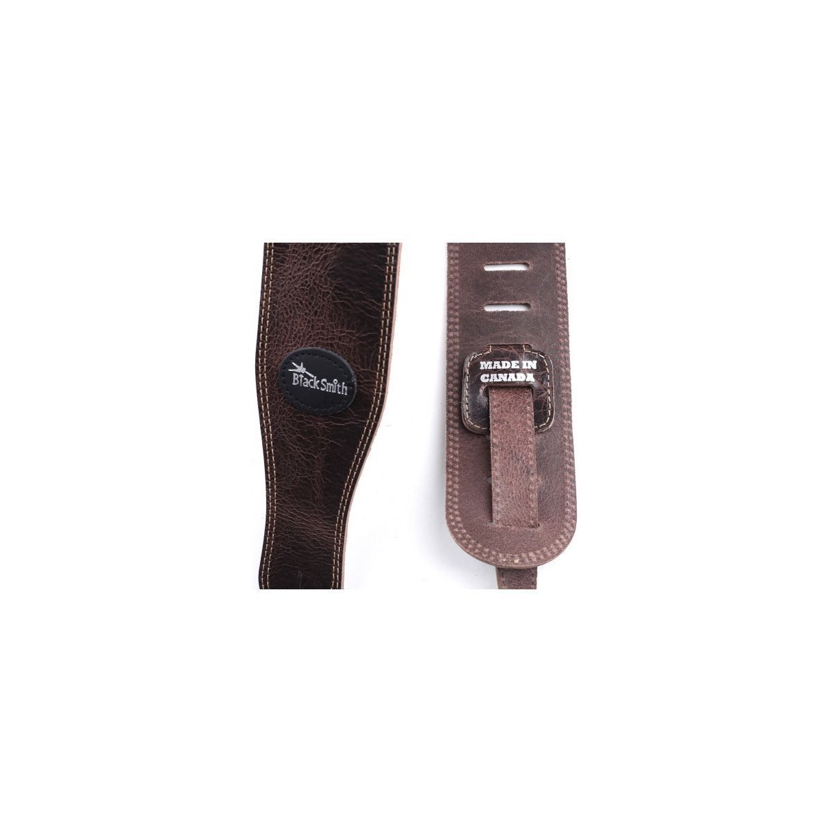 ремень для гитары, кожа, 70 мм, черный, толстый, со стяжком, кругл концы