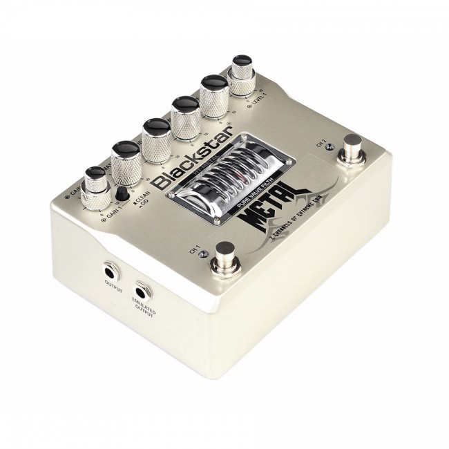 Ламповая педаль дисторшн HT-METAL – бескомпромиссная, двухканальная, ультра-хай-гейновая, злющая машина. Основанная на ламповой схеме с внутренним рабочим напряжением 300 В, эта педаль имеет каскадированное ламповое предусиление и аутентичную динамику лампового усилителя. Каждый из ультра-хай-гейновых каналов имеет собственные настройки гейна и громокости. Канал 1 имеет переключаемые режимы Clean/Overdrive. Трехполосный эквалайзер дополнен патентованной Blackstar настройкой (Infinite Shape Feature), которая меняет характеристики всего тембр- блока в диапазоне от британского хэви-метал до американского хай-гейна. Никаких компромиссов, извинений и оправданий – тотальный Metal!