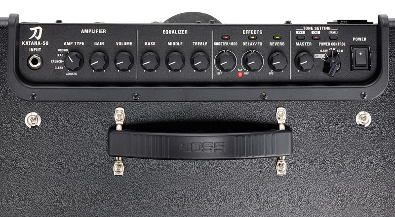 Доведенные до совершенства инженерной командой BOSS пять режимов усиления Katana-50 позволяют перекрыть весь диапазон тембров, начиная с органичных классических, и заканчивая современными с высоким усилением. Режим Clean характеризуется естественным прозрачным звуком, в то время как Crunch — жестким. Режим Lead, чтобы удовлетворить требованиям максимального количества музыкальных стилей, позволяет работать в широком диапазоне усиления для получения как "жирных" пронзительных блюзовых соло, так и тягучих легато. Режим Brown (DNA) заимствован у усилителей серии Waza и предлагает усовершенствованный тембр с высоким усилением, востребованный известнейшими рок-музыкантами с мировой известностью. Режим Acoustic является продолжением курса Katana на универсализацию и позволяет добиваться предельно естественного звучания при использовании электроакустических гитар.