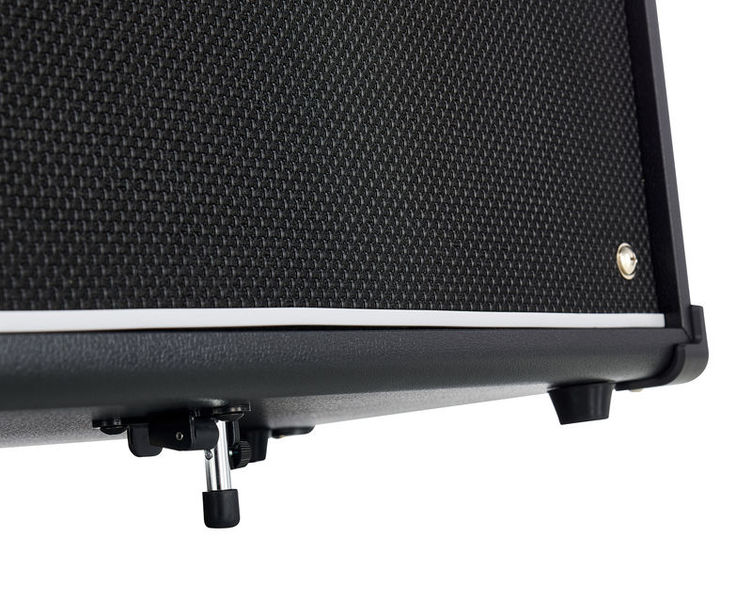 Для быстрой настройки звука на слух предусмотрены отдельные регуляторы управления каскадами усиления и трехполосным эквалайзером — все, как и в традиционном ламповом усилителе. Для управления основными параметрами достаточно просто повернуть соответствующий регулятор, а для сохранения в память — коротко нажать на кнопку. Power Control позволяет прибрать громкость при работе на маленькой сцене или дома, а установка Standby — мьютировать звук при замене гитары или в паузах. Вытащив встроенную стойку, вы сможете оперативно отрегулировать угол наклона усилителя, чтобы ориентировать его в нужном направлении.