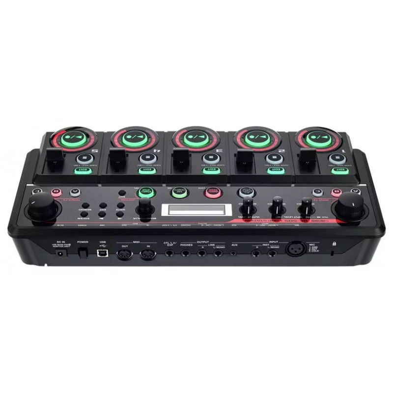 Огромное разнообразие встроенных эффектов позволяет разнообразить звучание лупа прямо во время исполнения. Входные эффекты, такие как ROBOT или VOCODER создают уникальные богатые текстуры при записи лупов, в то время как эффекты для обработки треков TRACK FX, такие как VINYL FLICK и BEAT REPEAT обеспечивают динамичные ди-джейские эффекты в реальном времени для обработки воспроизводящегося трека. 6 специальных кнопок - по три для INPUT FX и TRACK FX, управляют этими эффектами, позволяя моментально включать и выключать их в нужный момент. Кроме этого параметрами эффектов (частота среза фильтра, глубина эффекта и так далее) можно управлять в реальном времени с помощью ручек INPUT FX и TRACK FX. Компрессор и ревербератор обрабатывают общее выходное звучание.