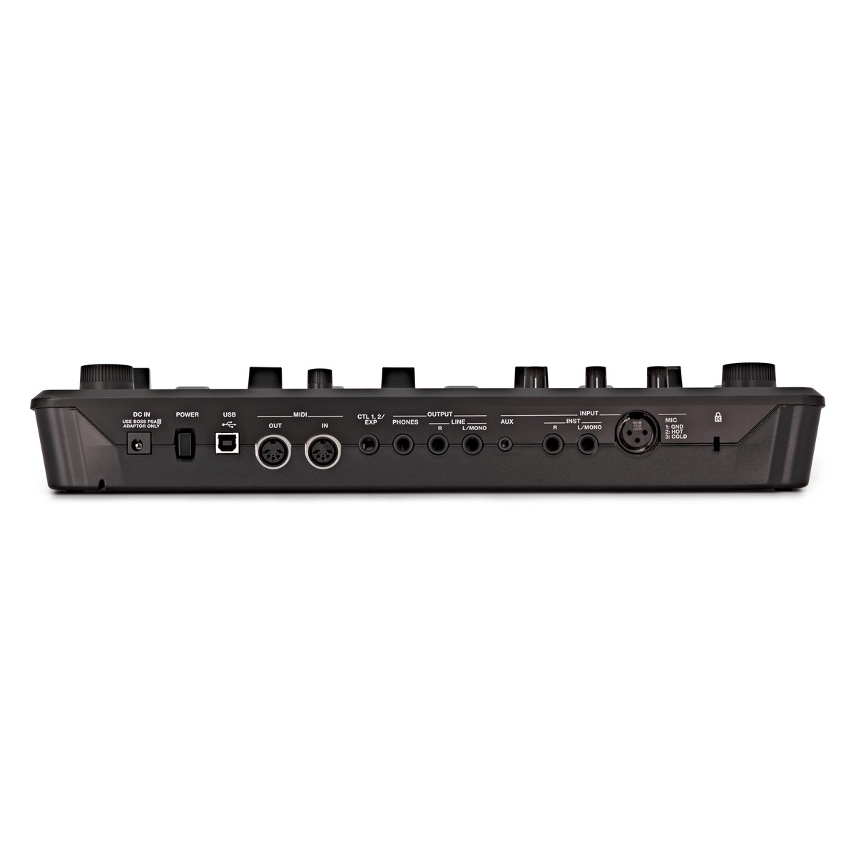 INPUT MIC jack: XLR type (balanced, phantom power: DC 48 V, 10 mA Max) INPUT INST (L/MONO, R) jacks: 1/4-inch phone type INPUT AUX jack: Stereo miniature phone type PHONES jack: 1/4-inch Stereo phone type LINE OUTPUT (L/MONO, R) jacks: 1/4-inch Stereo phone type CTL 1, 2/EXP jack: 1/4-inch TRS phone type USB port: USB Type B MIDI (IN, OUT) connectors DC IN jack