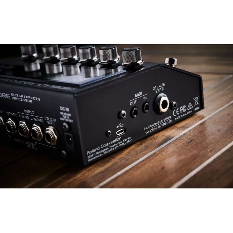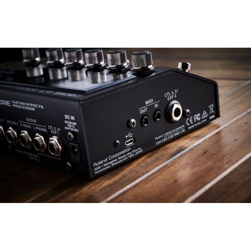 GT-1000CORE ? это новые возможности творческого самовыражения для педалборда любого формата, большого или маленького. Переключайтесь между режимами Memory и Manual для вызова пресетов и включения/выключения эффектов, а для интеграции с другими стомпбоксами задействуйте монофонические и стереофонические входы/выходы. Благодаря паре посылов/возвратов можно подключать внешние эффекты, использовать четырехкабельный метод коммутации или подавать раздельно сигналы на систему усиления звука и устройство записи. Расширенные возможности управления позволяют использовать для контроля внешние ножные переключатели и педали экспрессии, а также дистанционно переключать каналы усилителя. А благодаря компактным MIDI-входу/-выходу на разъемах TRS можно управлять с помощью GT-1000CORE другими MIDI-устройствами или наоборот, использовать внешнее MIDI-оборудование для управления GT-1000CORE.