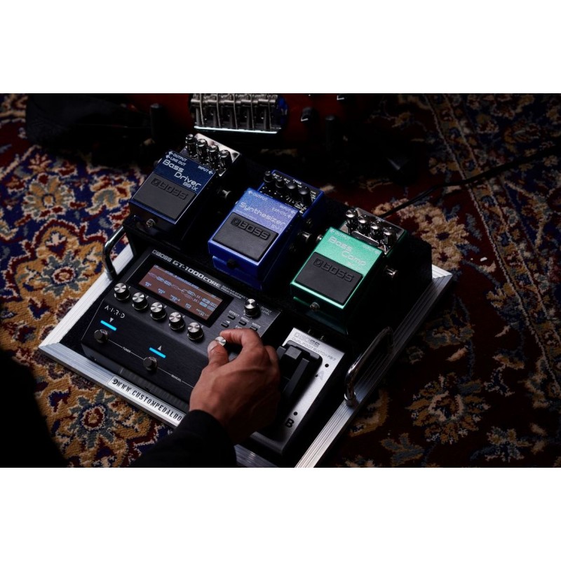 GT-1000CORE - это мощный инструмент для обработки басов в универсальном оформлении. Для формирования основы звука предусмотрено три басовых предусилителя AIRD, а для окончательного формирования тембра — восемь различных эффектов овердрайва/дисторшна. Имеются также компрессор MDP, хорус, флэнжер, сенсорный эффект вау и множество других эффектов, ориентированных на работу с сигналом бас-гитары. А с помощью универсальных эффектов и маршрутизации выходов GT-1000CORE вы можете передавать оптимизированный звук на сценический усилитель или микшер PA - или на оба устройства сразу.