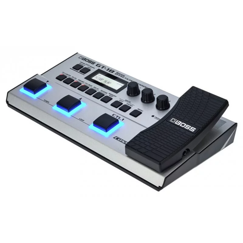 Не требующий много места для установки GT-1B оборудован тремя ножными переключателями, с помощью которых можно выбирать патчи, включать тюнер, управлять зацикливанием и другими операциями. Специальный переключатель CTL1 можно назначать на различные функции, такие как настукивание темпа, включение/выключение эффектов и ряд других, а педаль экспрессии и ее переключатель запрограммировать на управление громкостью, эффектами вау, транспонирования или редактирование различных параметров эффектов. Если же и этого недостаточно, для расширения функционала управления можно подключить к соответствующим разъемам устройства два внешних ножных переключателя или дополнительную педаль экспрессии. Порт USB процессора GT-1B, помимо того что обеспечивает доступ к BOSS Tone Central и BOSS Tone Studio, позволяет записывать исполнение напрямую в компьютер с помощью установленного в него программного приложения DAW.