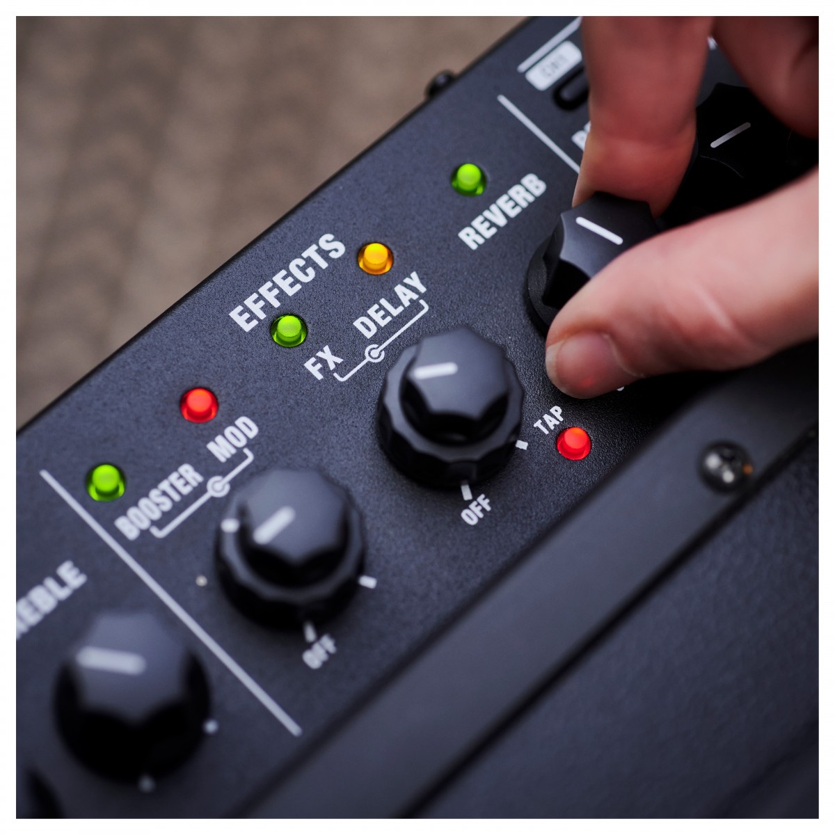 • Пять независимых секций эффектов (Booster, Mod, FX, Delay и Reverb) с тремя выбираемыми вариациями в каждой