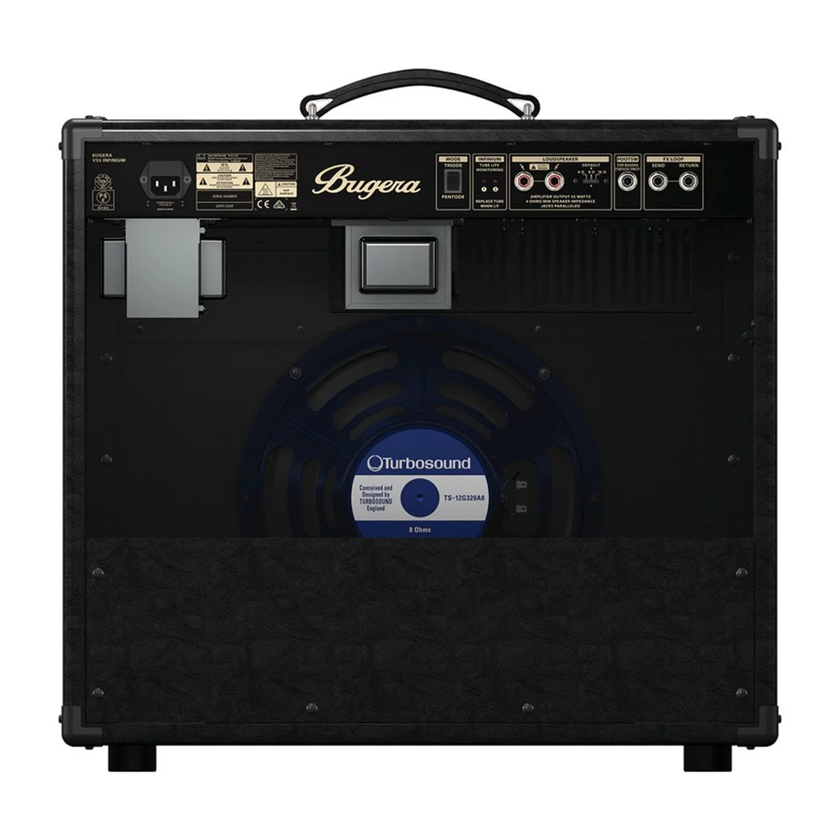 Разработанный на основе дизайна оригинального V55, экстраординарный полнофункциональный и собранный вручную, 55 Вт, 2-канальный ламповый V55 INFINIUM имеет не только винтажный звук и стиль, но и обладает современными характеристиками, которые наполнят ваш тон звуковой стратосферой. Оборудованный тремя 12АХ7 лампами предусилителя и двумя 6L6 лампами мощности, этот невероятный комбо дает гибкость двух независимых каналов и реверберацию, которые переключаются включенной в комплект педалью. Плюс ко всему революционная технология INFINIUM Tube Life Multiplier и великолепный 12" динамик TURBOSOUND делают V55 INFINIUM универсальной тон-машиной, которая идеально подойдет для студии, сцены, репетиций и концертных залов. Гитарный комбо V55 INFINIUM характеризуется подлинной класса-А технологией с 3 лампами предусилителя 12АХ7 и 2 лампами мощности 6L6. Тем самым комбо предоставляет мягко сбалансированную гармонию и натуральную ламповую компрессию, переходящую в теплый дисторшн. Тщательно отобранные лампы предусилителя 12АХ7 из классической эры 60-х предоставляют все что нужно от нежного блюза до дикого кранча. Зачастую усилители, изготовленные в British стиле имеют характерный хруст и звон при повышении уровня до максимума, V55 застрахован от этого, поскольку он использует каждую унцию мощности.