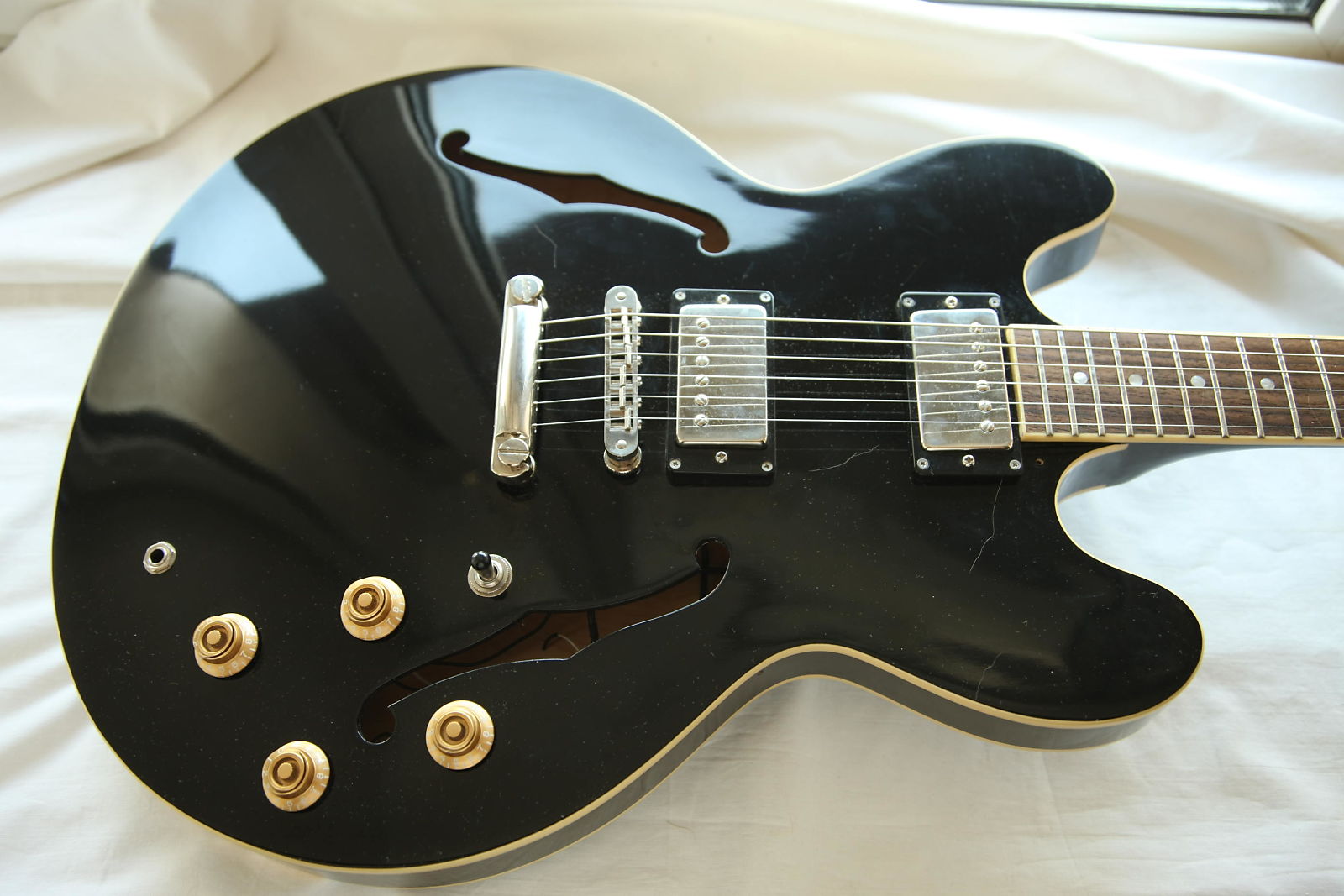 Полуакустическая электрогитара, форма корпуса ES®-335, корпус - клен, гриф - клен, крепление грифа - вклеенный, накладка - палисандр, звукосниматели - 2 хамбакера, бридж -Tune-o-matic, кейс в комплекте, цвет черный.