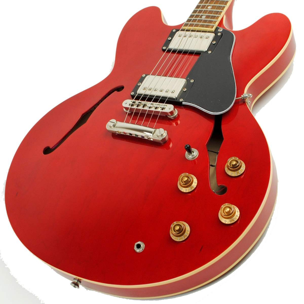 Полуакустическая электрогитара, форма корпуса ES®-335, корпус - клен, гриф - клен, крепление грифа - вклеенный, накладка - палисандр, звукосниматели - 2 хамбакера, бридж -Tune-o-matic, кейс в комплекте, цвет красный.