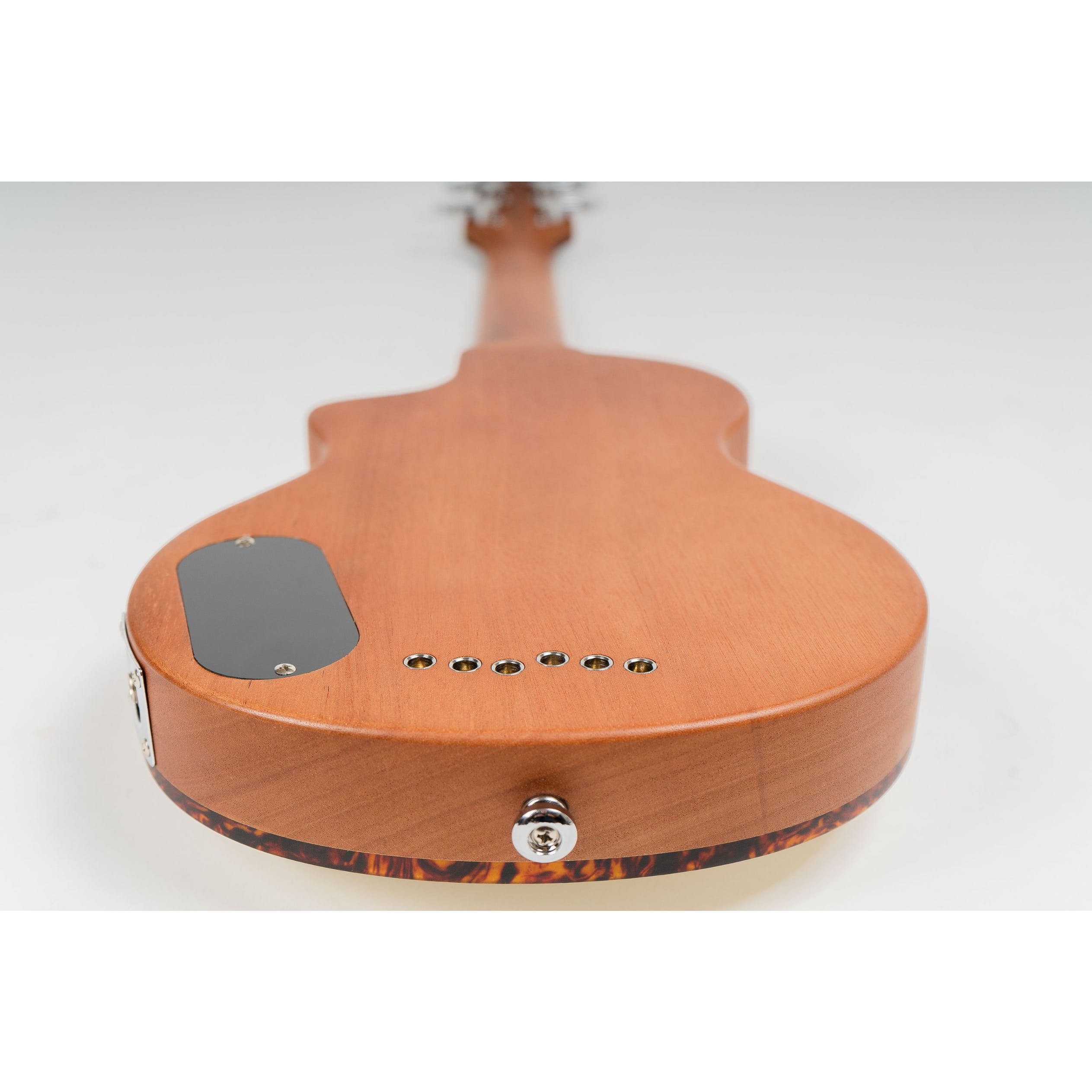 Корпус и гриф изготовлены из цельных кусков дерева окоуме (габонский махагон) в сочетании со вклеенным грифом и струнами, проходящими сквозь корпус дает максимальное насыщение звука обертонами древесины, яркую атаку и сочный сустейн.
