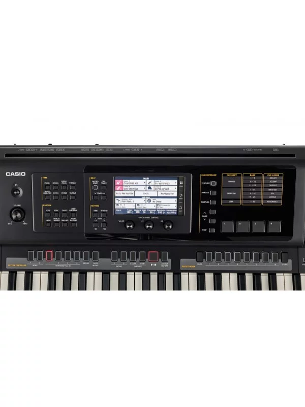 4 многофункциональных пэда создают дополнительное измерение для реализации креативных творческих идей. Пэды могут быть использованы для записи и воспроизведения сэмплови музыкальных фраз. Цветной сенсорный дисплей с диагональю 5.3 дюйма позволяет легко управлять разнообразным функционалом синтезатора. Акустическая система мощностью 20 Вт на каждый канал, с динамиками высокого разрешения, сочетается в инструменте с однонаправленной 2-полосной системой усиления басов. 4-полосный параметрический эквалайзер позволяет проводить финальную доводку звучания акустической системы.