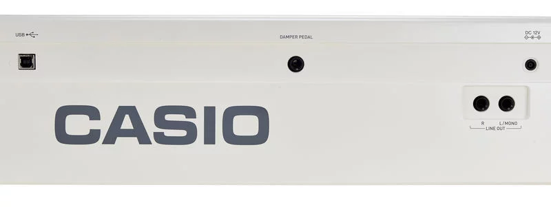 Электронное пианино Casio PX-160 BK отличается богатым функционалом, его можно подключить к ПК при помощи USB интерфейса, используя в качестве MIDI-клавиатуры. Также есть разъемы для работы с другими устройствами, линейный независимый стереовыход. На передней панели расположены два разъема, предназначенные для наушников.