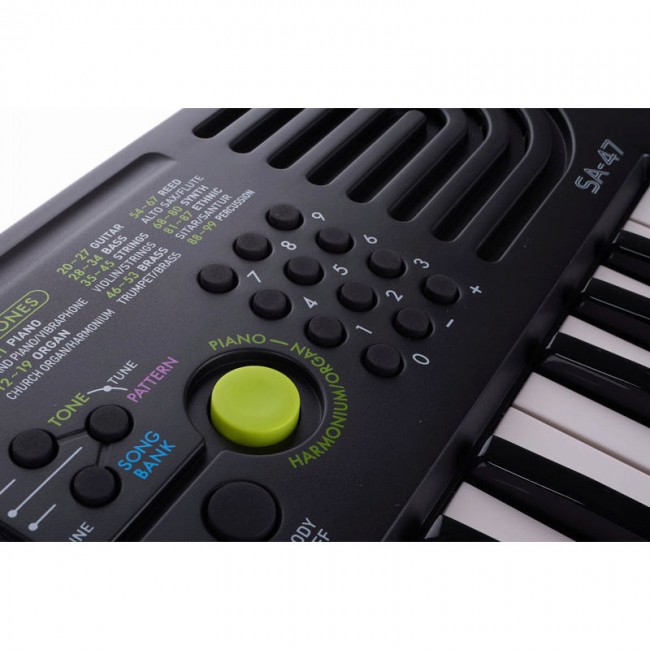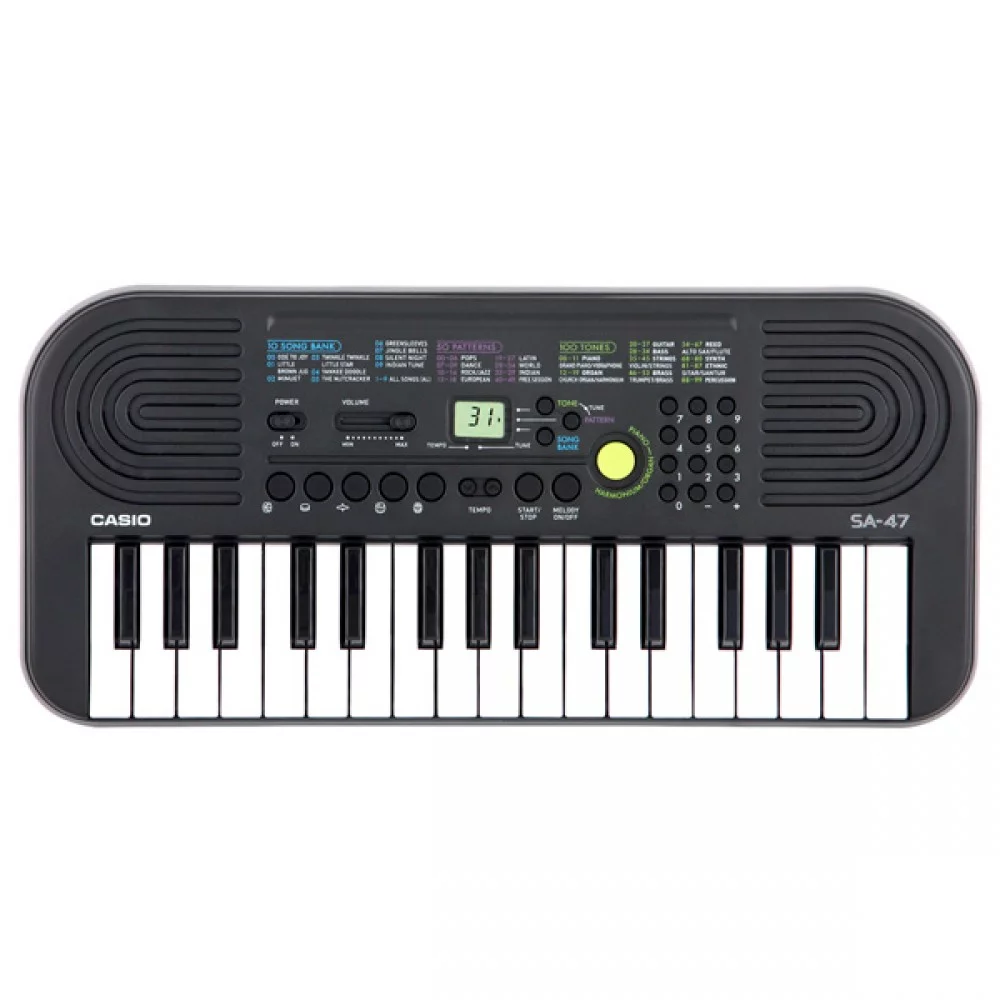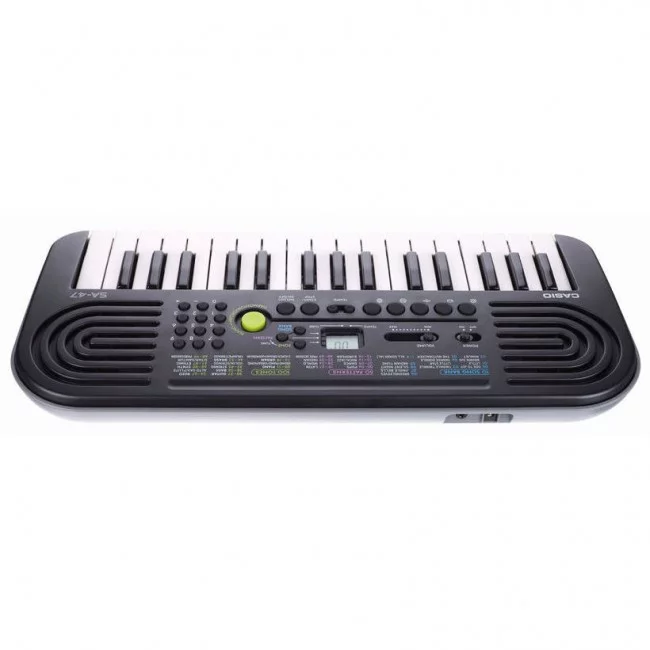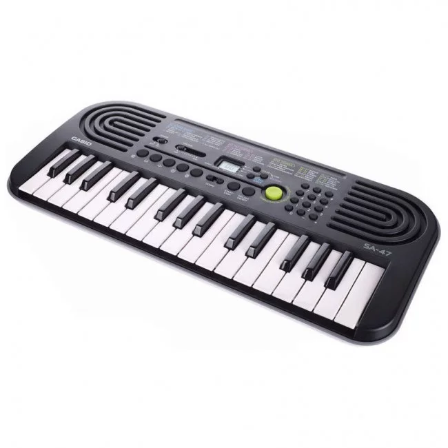 Сделать свои первые шаги в мире музыки поможет синтезатор Casio SA 47. Данная модель имеет 32 небольшие клавиши, 100 тембров, 50 стилей, 8-нотную полифонию, 5 кнопок ударных инструментов, режим язычкового органа и фортепиано с возможностью переключения. Благодаря компактным размерам она идеально подходит для юных музыкантов.