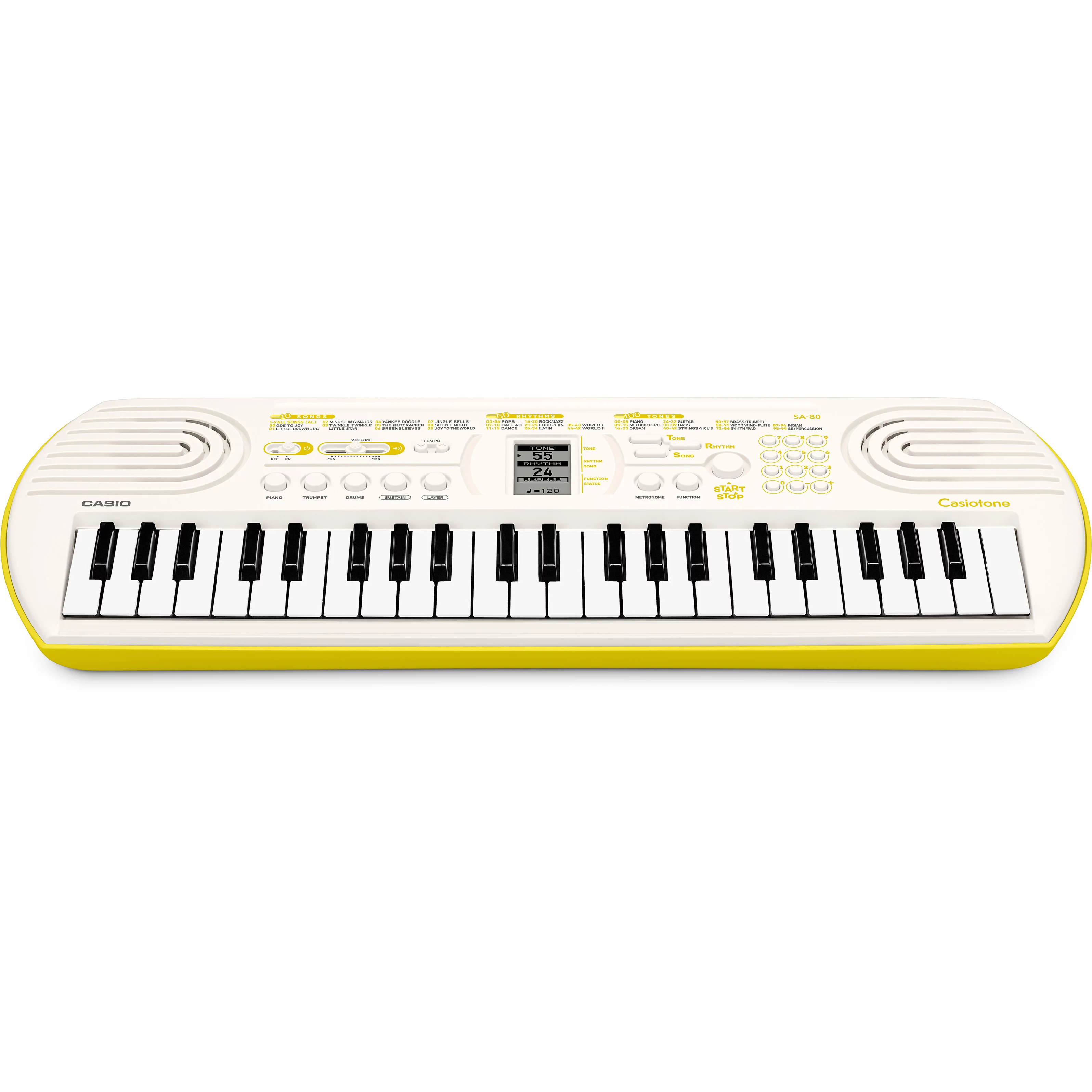 Casio SA-80 – Отличный синтезатор для самых маленьких. Этот простой в освоении инструмент имеет 44 мини-клавиши, которые особенно удобны для детских рук.