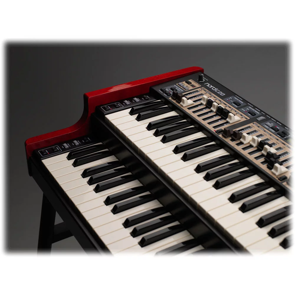 Каждый из мануалов Nord C2D оборудованы 61 клавишей со скругленными краями, сверхбыстрым откликом и четким ходом, что дает ощущение игры на оригинальном винтажном инструменте. Для лучшей эргономики верхняя панель и мануал слегка наклонены в сторону исполнителя, а панель между верхним и нижним мануалом имеют приятное на ощупь покрытие, что особенно заметно при исполнении глиссандо.