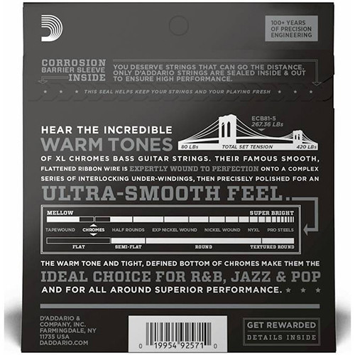 Струны для 5-струнной бас-гитары D`Addario ECB81-5