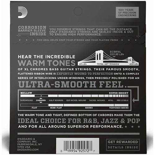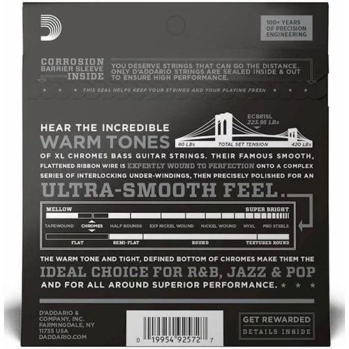 Хромирование обеспечивает глубокое, богатое звучание в самом низу диапазона, благодаря которому эти струны являются хорошим выбором для исполнителей в стилях джазовой, R&B и поп-музыки.