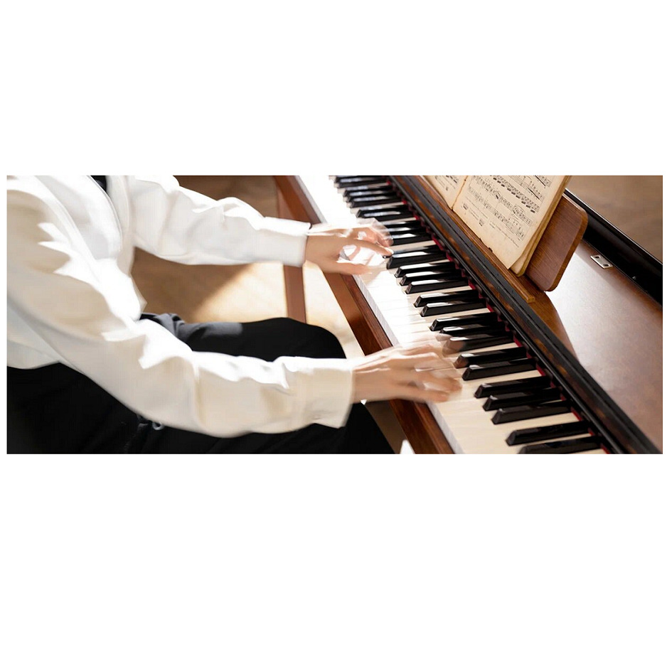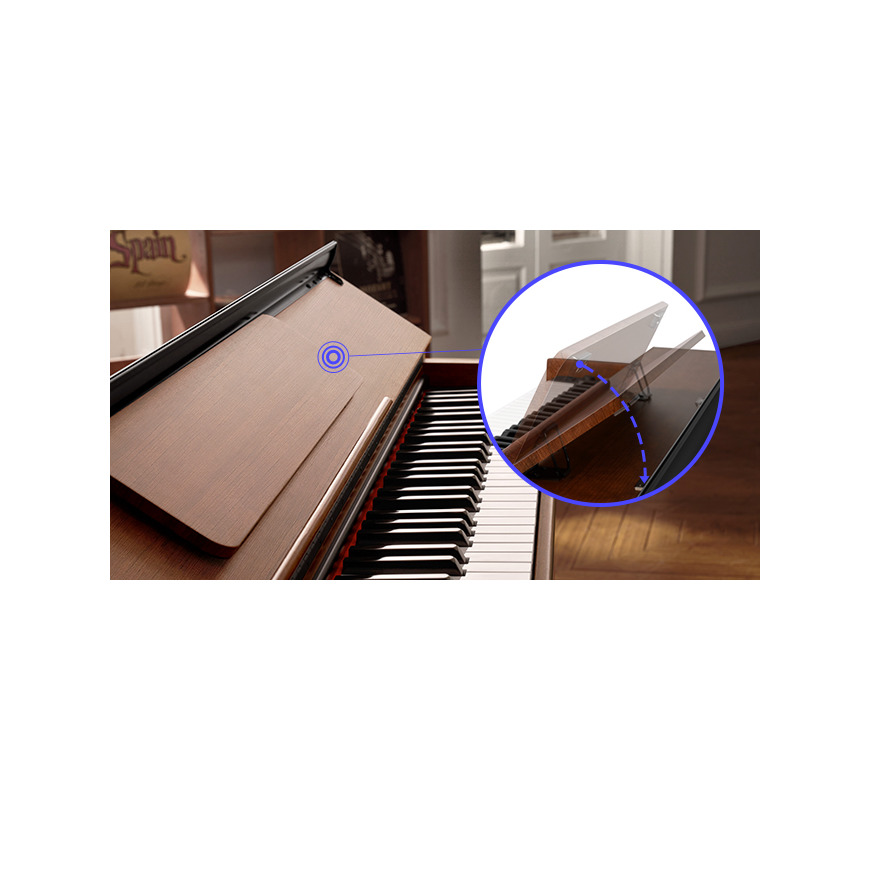 Раскладной пюпитр имеет устойчивую и удобную конструкцию, которая позволяет размещать музыкальные партитуры. Уникальная конструкция с магнитной фиксацией эффективно защищает механику и внешний вид клавиш, надежно убирая пюпитр при закрытии крышки.