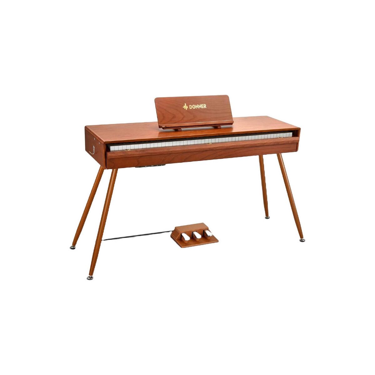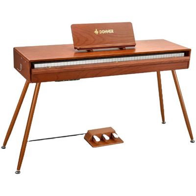 Donner DDP-80 Pro – Цифровое пианино. Благодаря отделке из массива дерева и выдвижной клавиатуре инструмент прекрасно вписывается в интерьер в роли столика. Функциональность инструмента дополнена Bluetooth Audio/MIDI.
