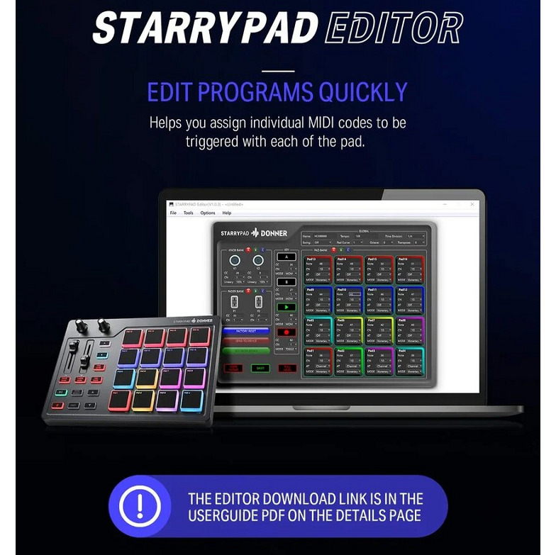 Donner STARRYPAD MIDI Drum Machine Beat Maker с 16 пэдами для создания музыки