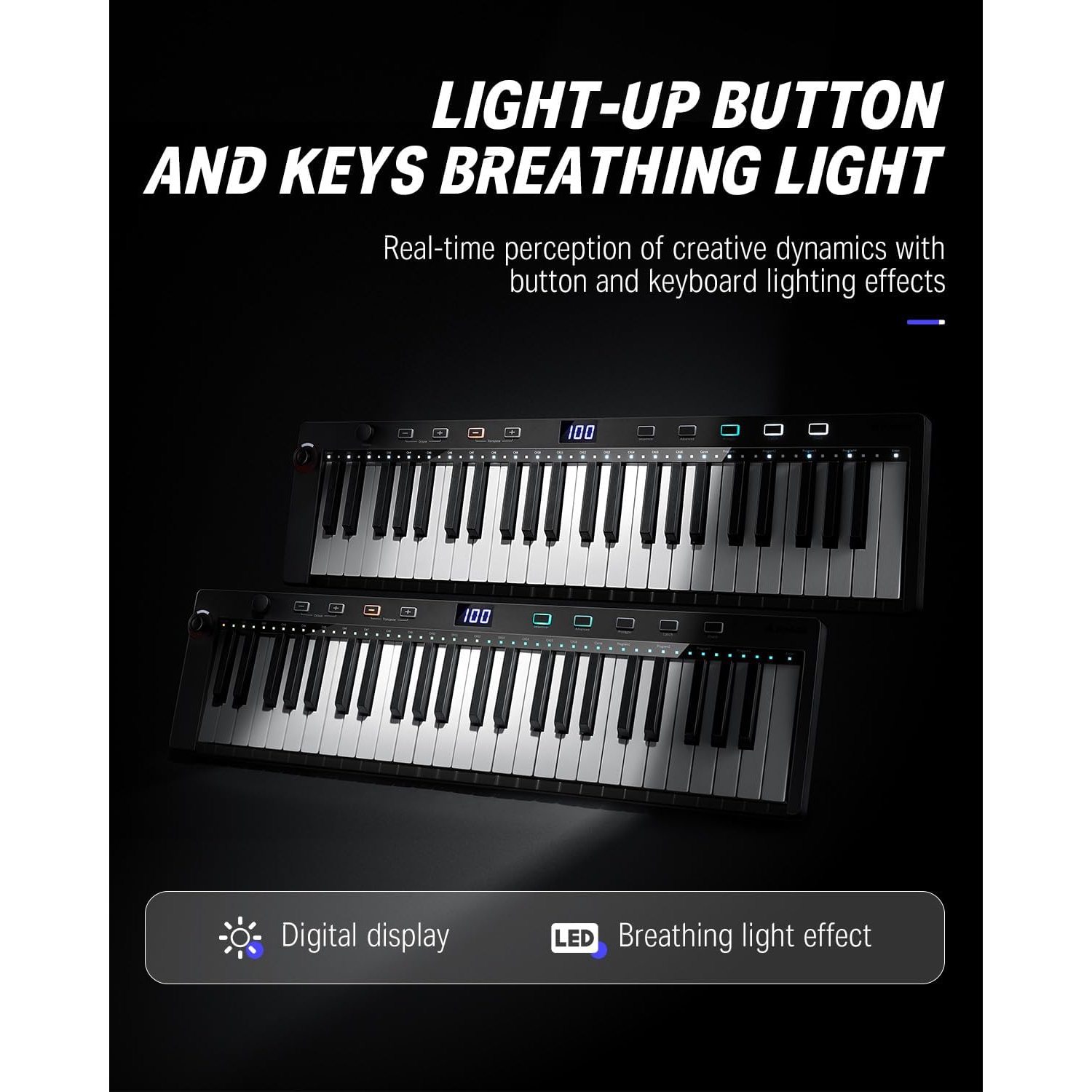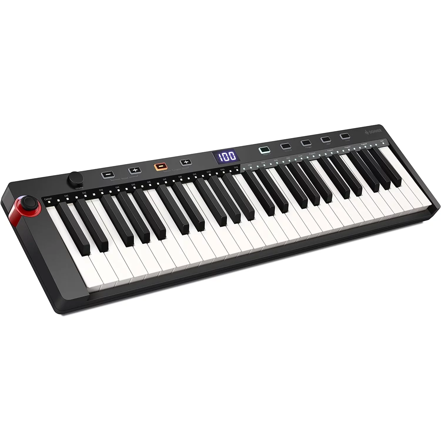 DONNER N-49 MIDI-контроллер, используемый для создания музыки (без встроенного источника звука), использует 49-клавишную взвешенную клавиатуру стандартного размера чтобы обеспечить вашим пальцам достаточно места для точного выражения эмоциональных ощущений мелодии и фраз.