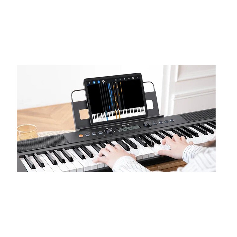 Подключите ваш мобильный телефонов или iPad для воспроизведения большего количества музыки и аккомпанемента в режиме реального времени. Вы не ограничены аккомпанементом и музыкальными упражнениями, которые поставляются с этим аппаратом; вы также можете воспроизводить самые последние и популярные песни, подключив свой мобильный телефон или iPad. Вас ждет еще больше возможностей для игры.