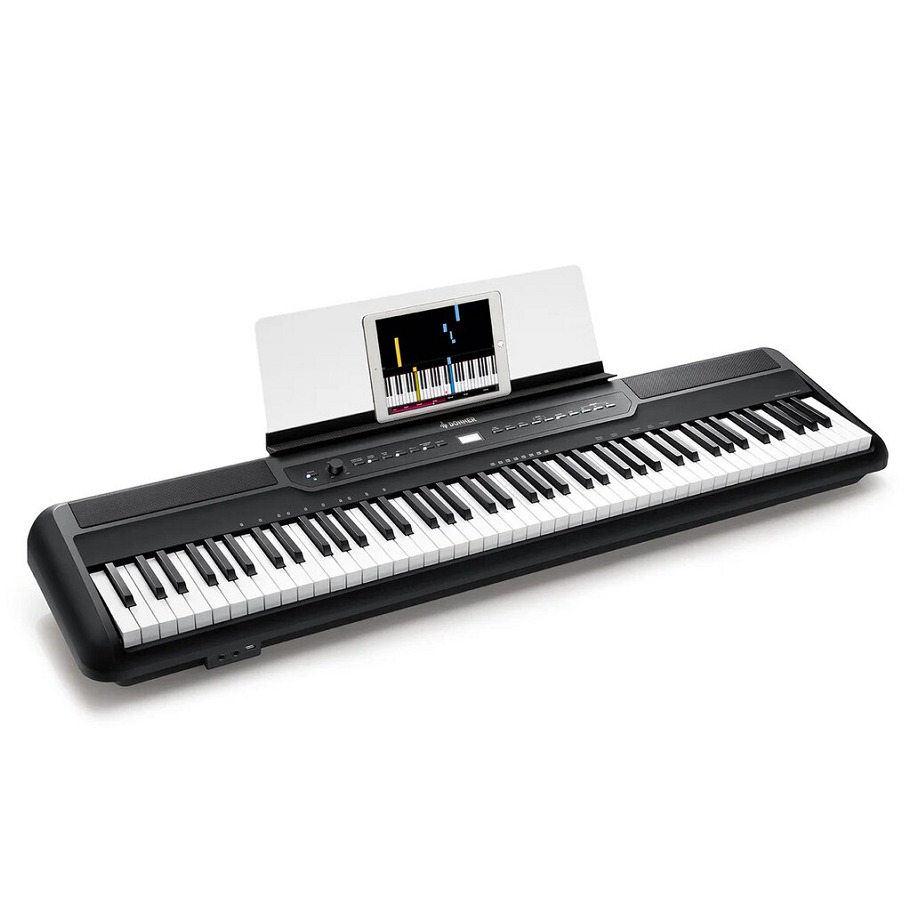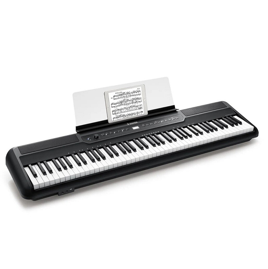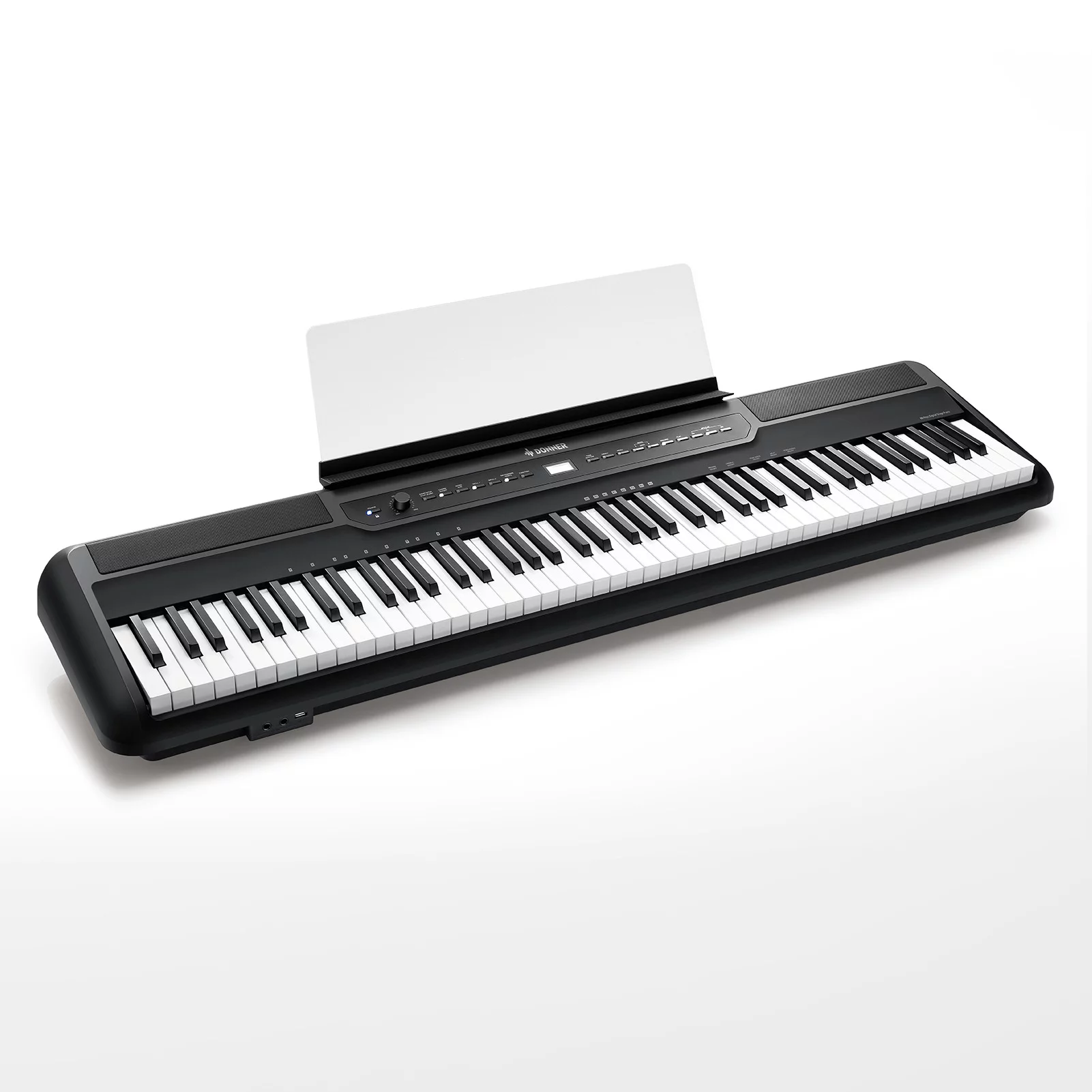 Цифровое пианино оснащено дисплеем LCD и функцией прямого выбора кнопок на панели. Поддержка функций Bluetooth и MIDI. Он также поддерживает USB-подключение IOS, Android, MIDI/PC. Позволяет вам легко реализовать интеллектуальное взаимодействие различных сценариев, таких как обучающие упражнения в приложении, демо-запись и аранжировка.
