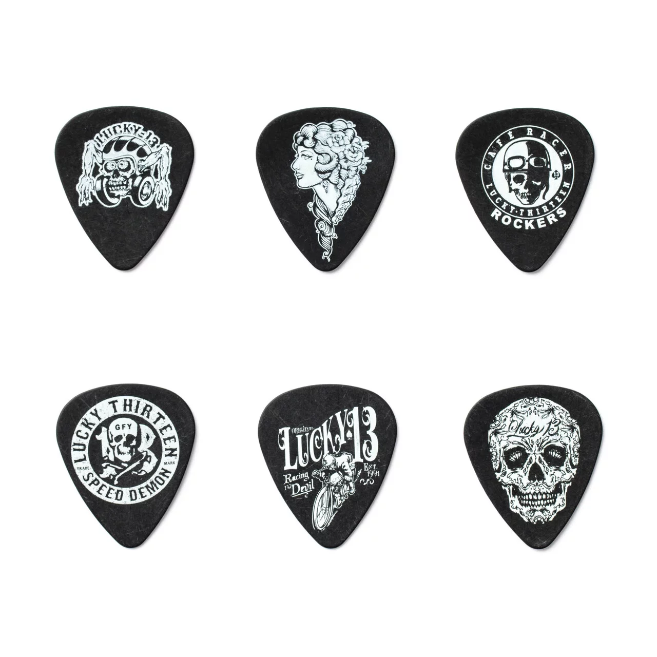 Для создания этой, вдохновленной рок-н-роллом, серии медиаторов, Dunlop объединили свои усилия с Lucky 13 Apparel.