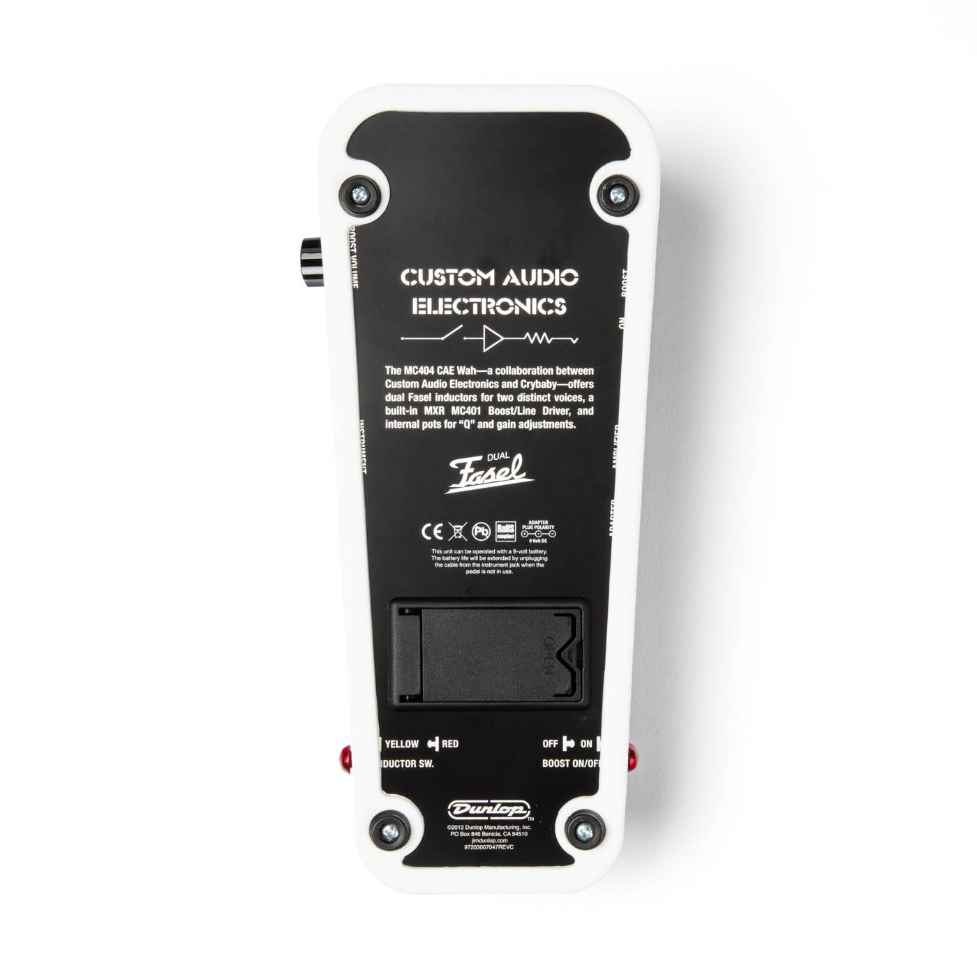 В Dunlop MC404 используется оба варианта дросселей Fasel, каждый из которых задает свой режим работы (с подчеркнутым верхом или с резонансом в области нижней середине). Режимы выбираются переключателем сбоку педали, а ширина фильтра устанавливается потенциометрами на монтажной плате. Поскольку у многих музыкантов педаль вау является основой звука для соло, в MC404 также встроен контур, используемый в педали MXR MC401 Boost/LineDriver. Он приводится в готовность собственным переключателем и активируется одновременно с эффектом. Уровень подъема сигнала регулируется ручкой настройки.