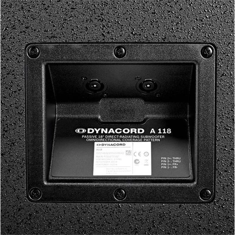 Dynacord A 118A – активный сабвуфер из серии A-Line от известного немецкого производителя. Модель оснащена высокопроизводительным усилителем класса D мощностью 305 Вт (пиковая - 400 Вт) с DSP. Сабвуфер отличается мощным, плотным и чистым звучанием. Он подходит для усиления низкочастотного диапазона в концертных залах небольшого и среднего размера. Модель идеально сочетается с акустическими системами А 112А и А 115А в качестве сателлитов. Частотный диапазон – от 40 до 130 Гц. Максимальный уровень звукового давления – 123 дБ. В конструкции сабвуфера используются современные высококачественные компоненты и материалы, которые выделяют его среди моделей аналогичного класса и ценовой категории. Сабвуфер заключён в прочный корпус из многослойной фанеры толщиной 15 миллиметров с текстурным покрытием черного цвета. Внутри корпуса расположен 18-дюймовый низкочастотный динамик EVS-18K, защищённый прочной металлической решеткой. Для удобства переноски по бокам предусмотрены две надёжные утопленные ручки. Вес модели – 31,3 кг.