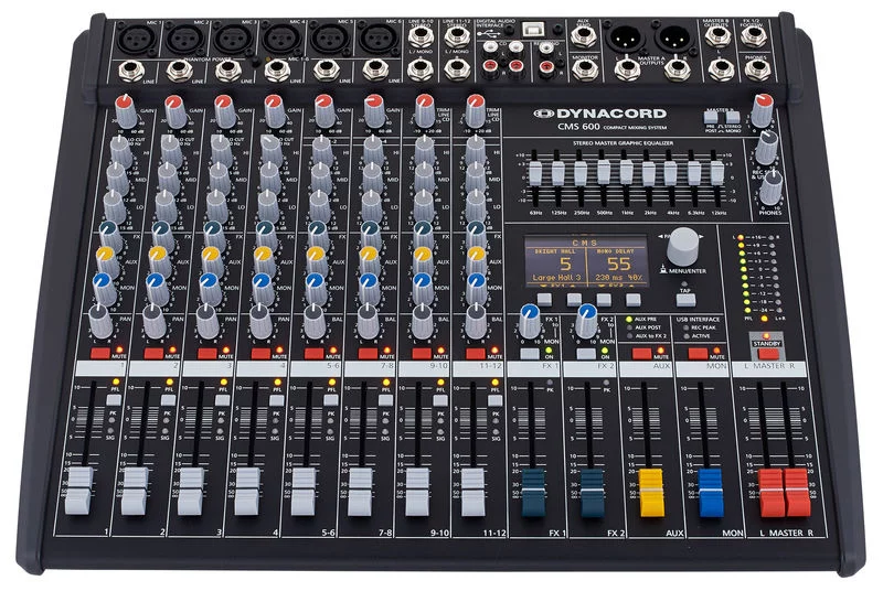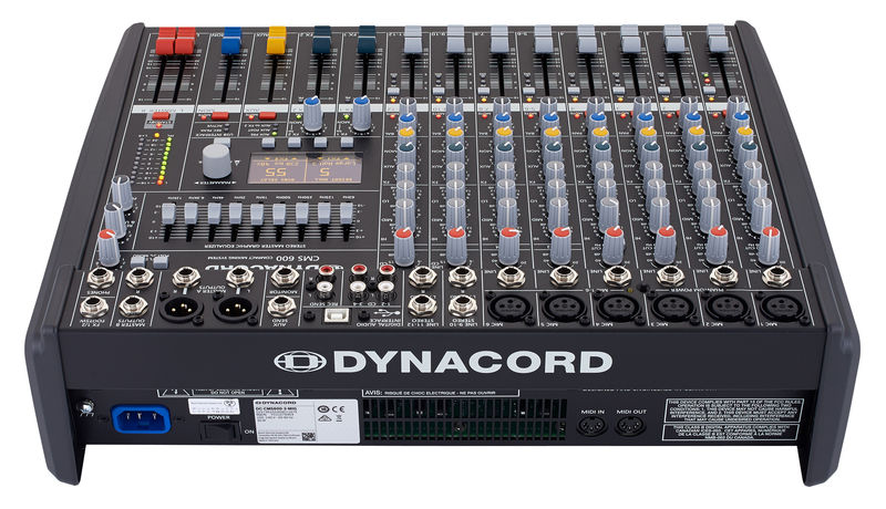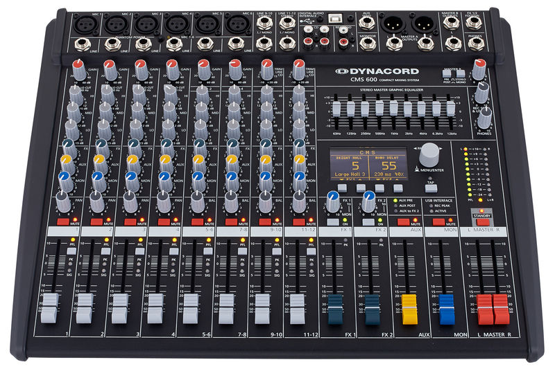 Dynacord CMS 600-3 – микшерный пульт из последнего поколения линейки CMS Compact Mixing System, младшая модель серии. Это лёгкий и компактный многофункциональный микшер, обладающий впечатляющими возможностями. Он идеально подходит для профессионального применения, когда не требуется большого количества каналов, а качество аудио сигнала имеет существенное значение. В конструкции применяются комплектующие самого высокого качества, в том числе фейдеры и потенциометры Alps. Модель оснащена 4 микрофонными/линейными входами, двумя микрофонными стерео USB каналами и двумя линейными стерео каналами. Микшер имеет удобный и интуитивно понятный пользовательский интерфейс. На экране высокой контрастности, отлично читаемом даже при ярком освещении, наглядно отображаются настройки. CMS 600-3 оснащён двумя встроенными процессорами эффектов со 100 пресетами и 20 пользовательскими банками для собственных установок в каждом. Для подключения к компьютеру используется 4 входных и 4 выходных канала USB. Благодаря небольшому размеру и весу (всего 5,8 кг) Dynacord CMS 600-3 легко транспортировать и устанавливать. Блок питания с автоматическим переключением вольтажа позволяет использовать микшер в любой стране мира.