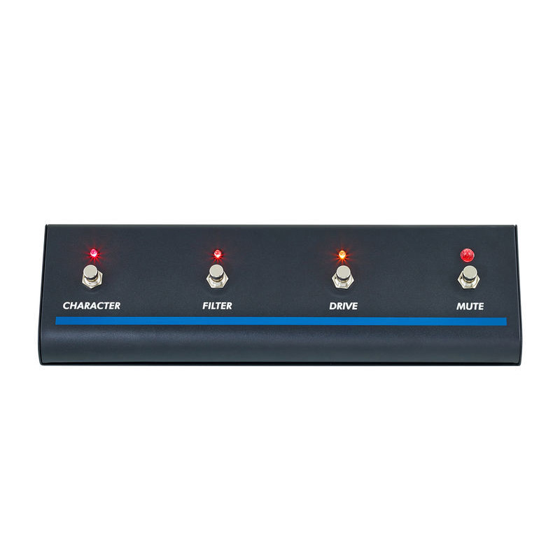 Футсвитч разработанн специально для басовых усилителей - голов EBS TD660 и Fafner II и для линейки NeoGorm EBS. Содержит четыре отдельных ножных переключателя в одном устройстве, чтобы управлять драйв - каналом, характером, фильтрами и кнопка отключения звука.