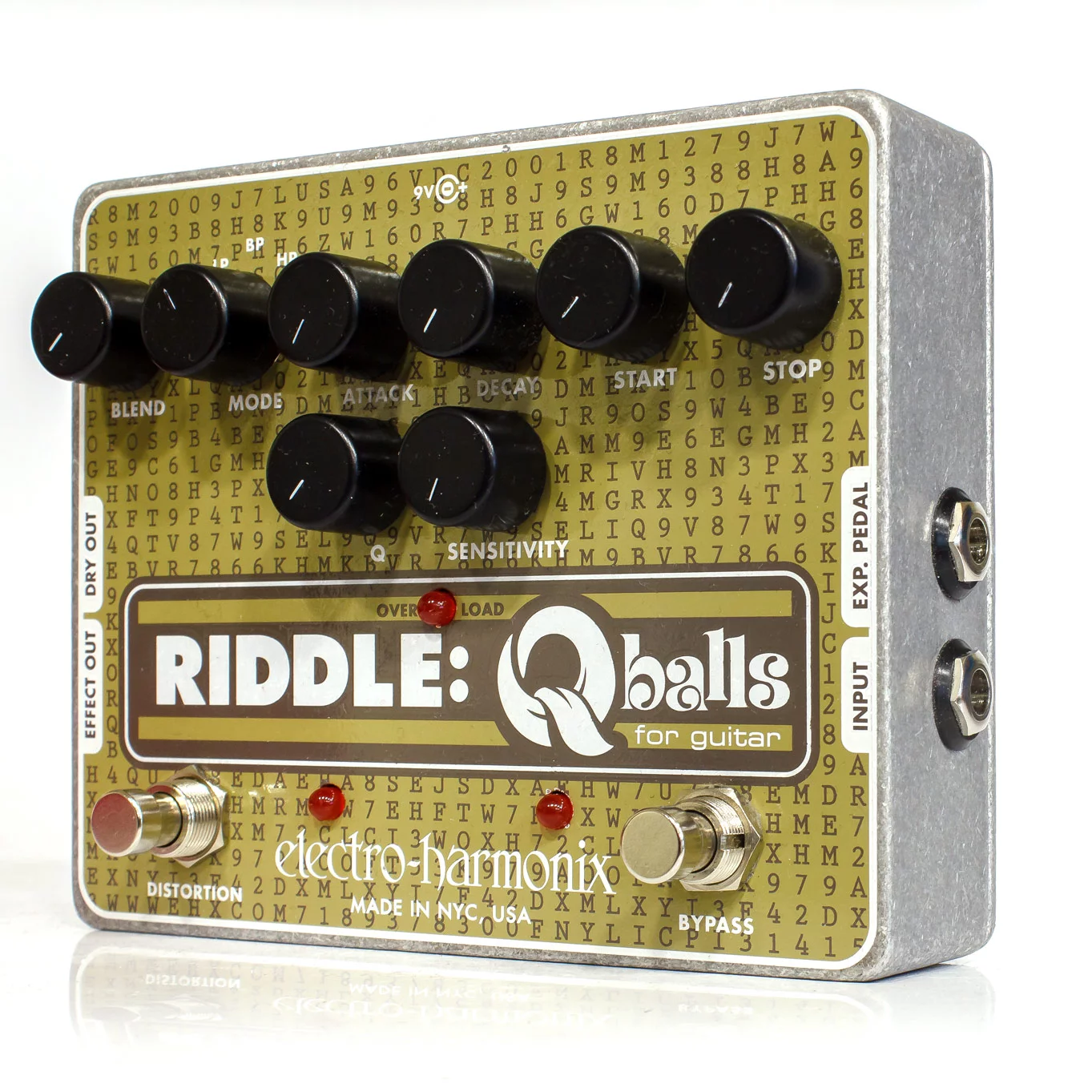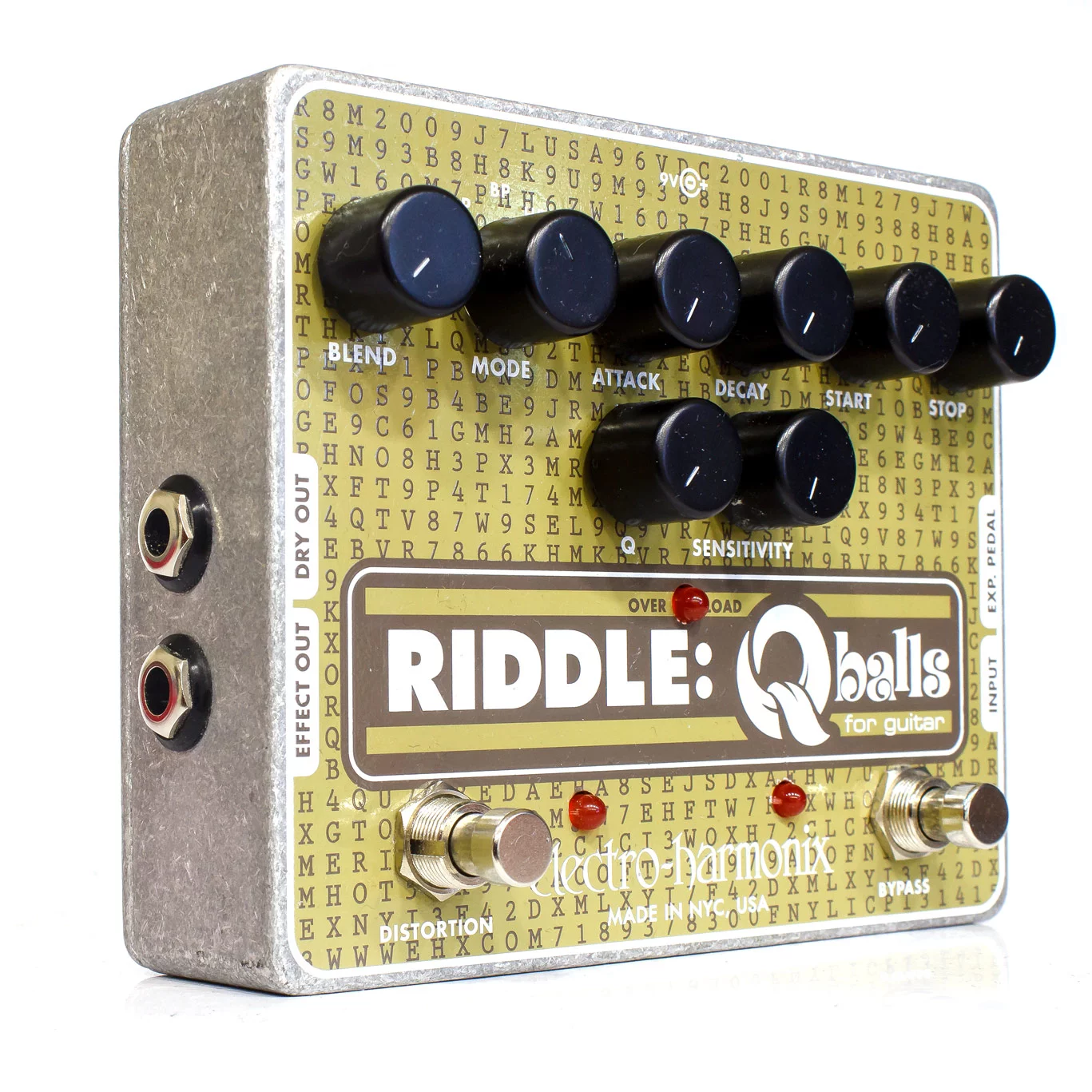 EHX Riddle Qballs предоставляет выбор из трех типов параметрических фильтров: полочные фильтры ВЧ и НЧ, а также пропускной полосовой фильтр. Регулируется как добротность фильтров, так и верхняя/нижняя границы их рабочей полосы. Настройки динамики включают в себя чувствительность к атаке и скорость срабатывания/выключения фильтра. При подключении педали экспрессии (приобретается отдельно) Riddle Qballs можно использовать как гибко настраиваемую "квакушку" (срабатывание по атаке при этом автоматически отключается). В качесте бонуса EHX Riddle Qballs имеет встроенный контур драйв/дисторшн для дополнительной окраски. Дисторшн не имеет настроек на передней панели, но его предпочтительный уровень можно задать мини-потенциометром под нижней крышкой педали.