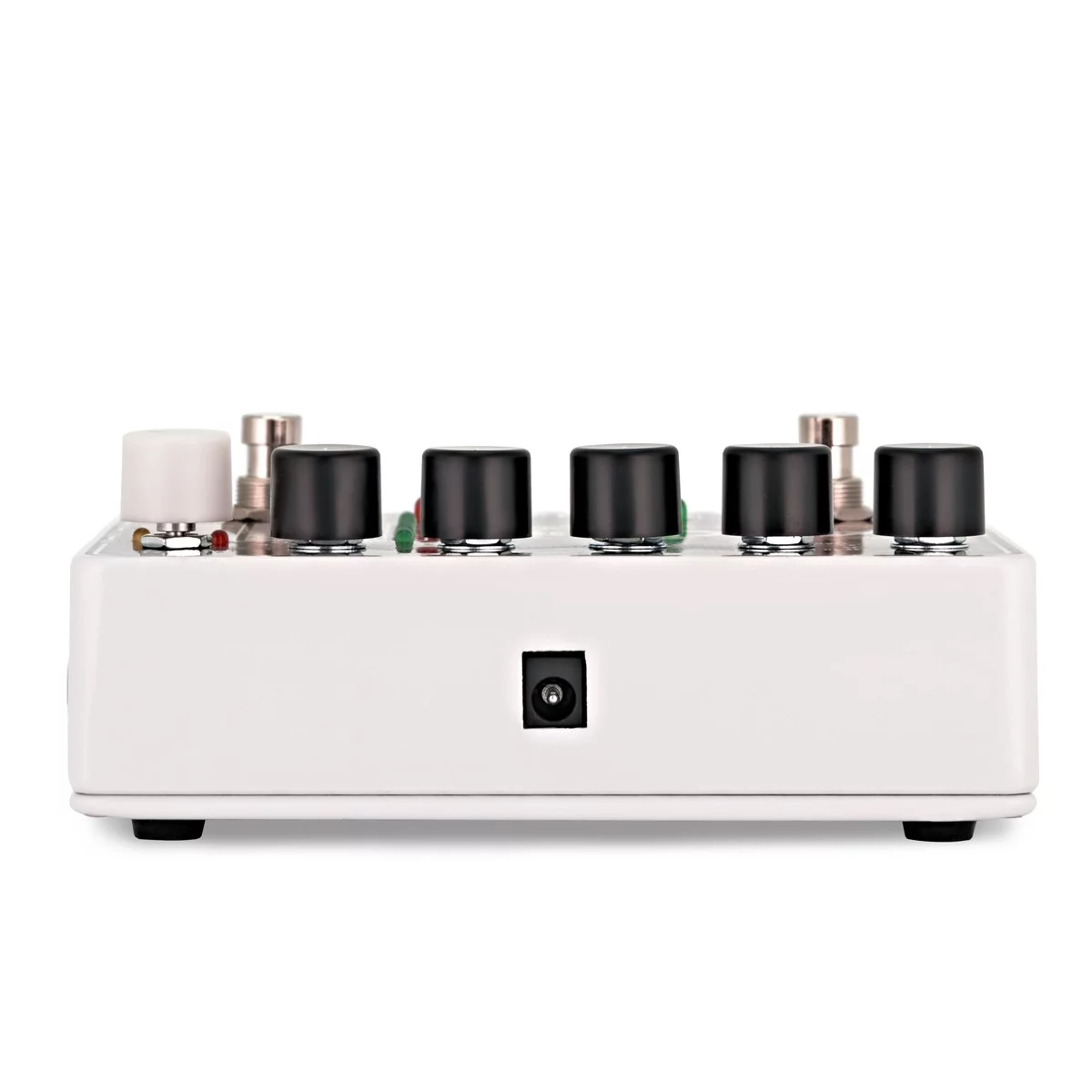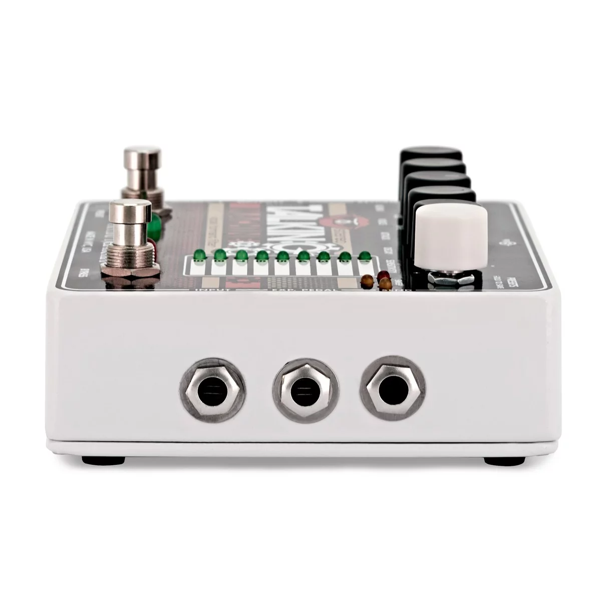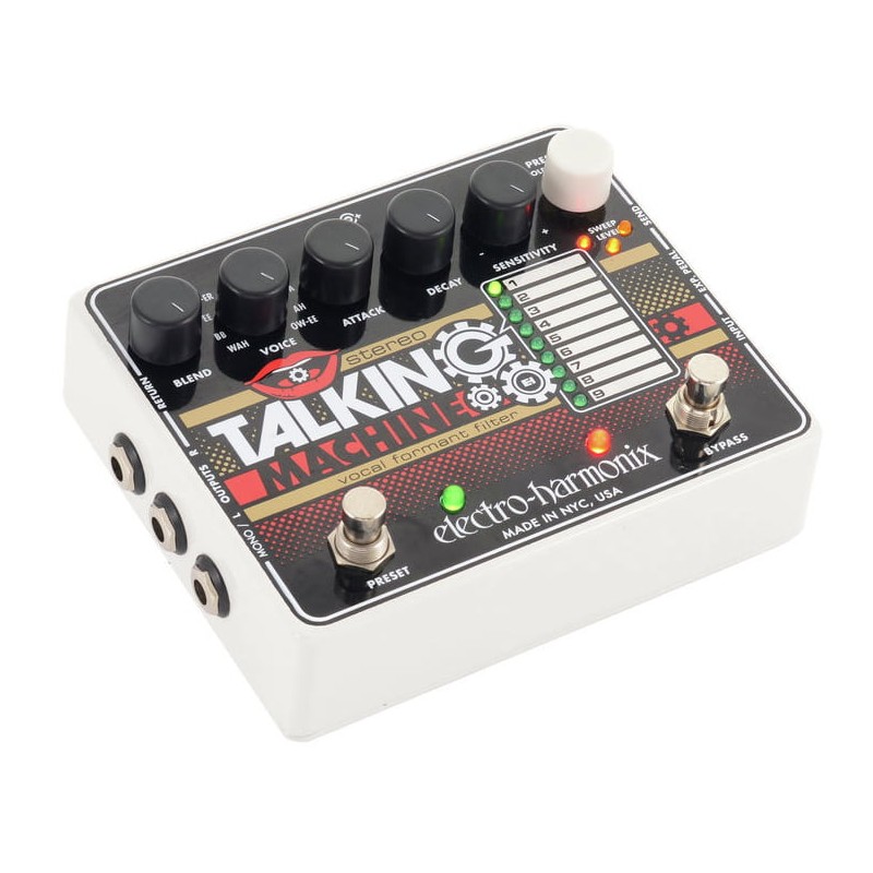 EHX Stereo Talking Machine - не только цифровая эмуляция Talk-Box, это настоящая "голосовая станция" для гитары и не только. Вы получаете на выбор семь динамических фильтров на основе голосовых формант, а также автовау и envelop filter на основе популярных педелаей EHX. Форманты отличаются не только имитируемыми гласными звуками, но и тембрами. Все это разнообразие дополняется тем, что каждому фильтру можно задать обратное направление движения. Интересным бонусом является контур фузза, который вносит дополнительную окраску и "зерно" в работу фильтров. Встроенная петля эффектов дает возможность встраивать в цепь педали внешние обработки. Свои эксперименты и любимые настройки можно сохранять в ячейках 9 пользовательских пресетов (пролистываются по кругу отдельной кнопкой). Стереовыход обеспечивает альтернативную маршрутизацию и оптимальное взаимодействие со стерео эффектами 2 in х2 out.