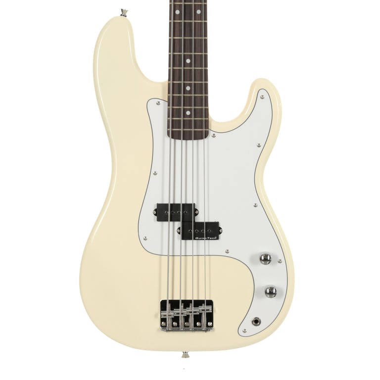Бас-гитара, форма Precision, корпус - липа, гриф - клен, накладка - палисандр, звукосниматель - P-type, цвет белый