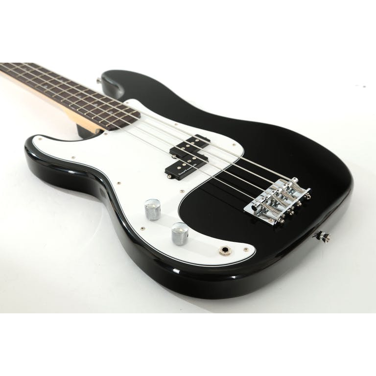 Левосторонняя бас-гитара, форма Precision, корпус - липа, гриф - клен, накладка - палисандр, звукосниматель - P-type, цвет черный