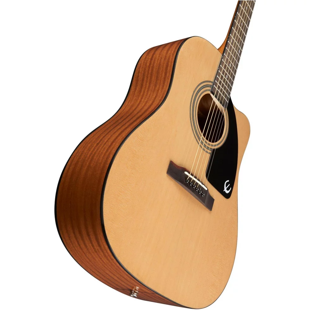Гитара Epiphone AJ-100CE сочетает в себе все основные характеристики модели Advanced Jumbo такие, как верхняя дека из цельного массива ели, обечайка и задняя дека из красного дерева. Кроме этого гитара оснащена пьезозвукоснимателем Shadow P-4 для подключения гитары в комбо или микшерный пульт.