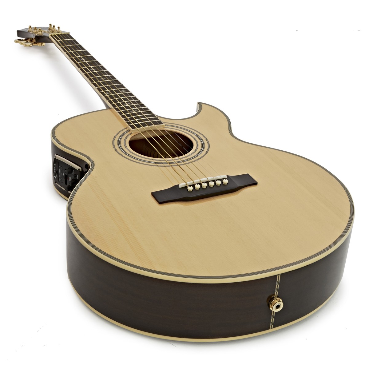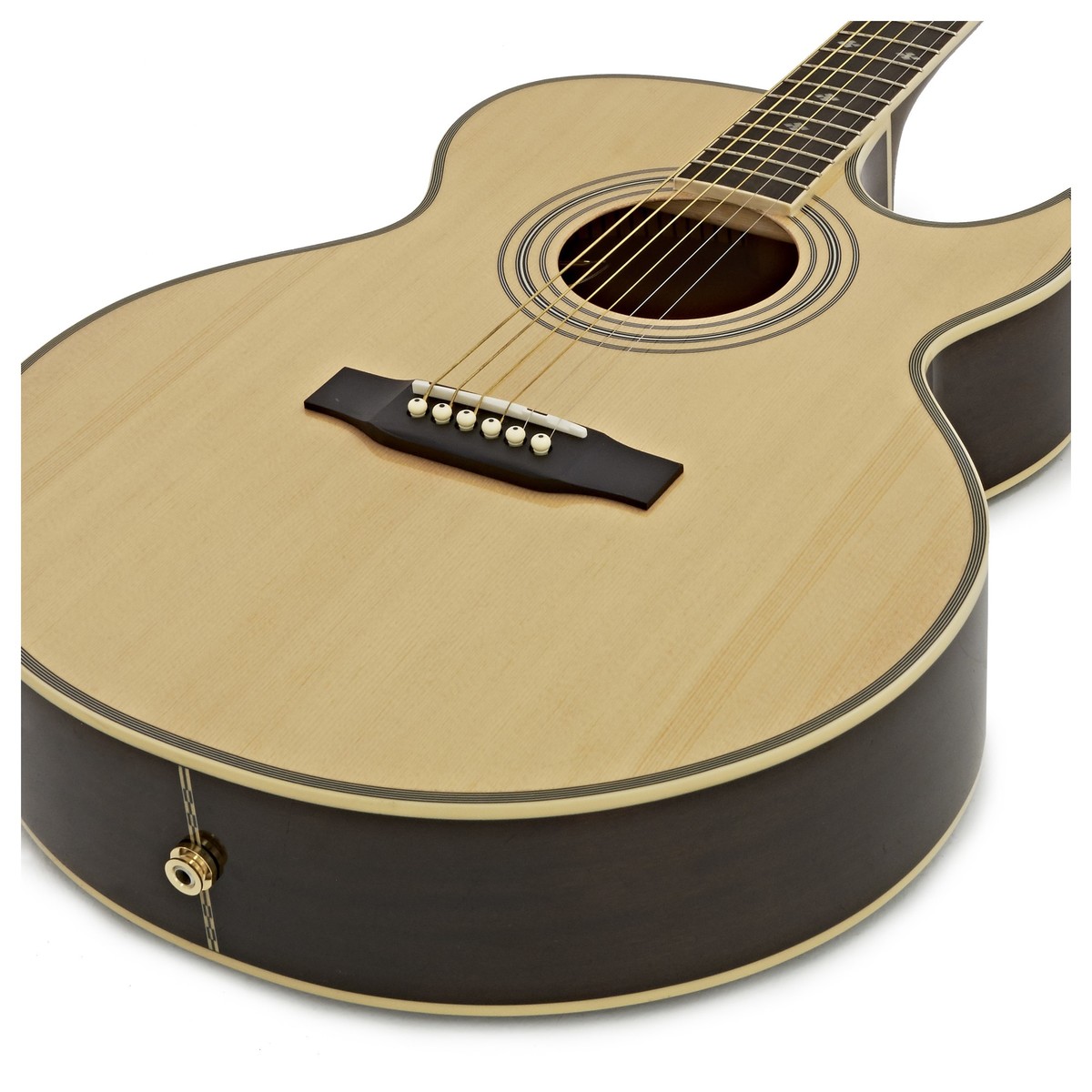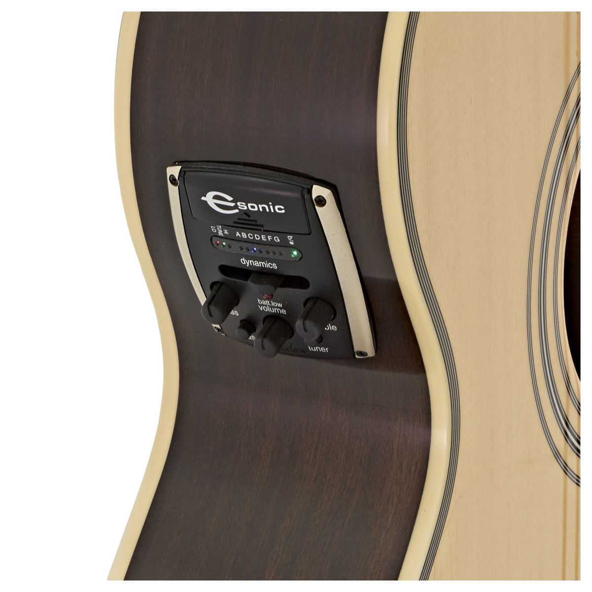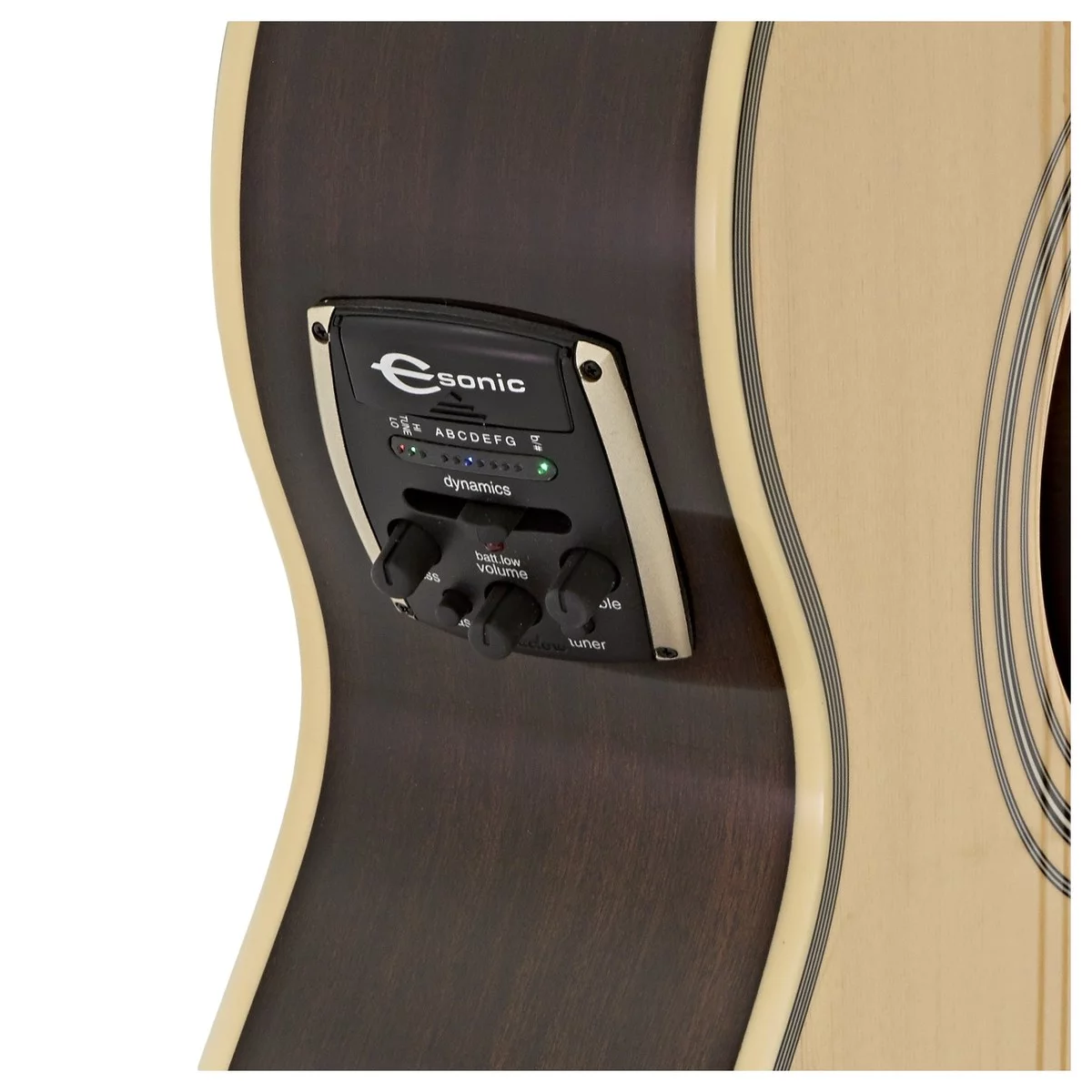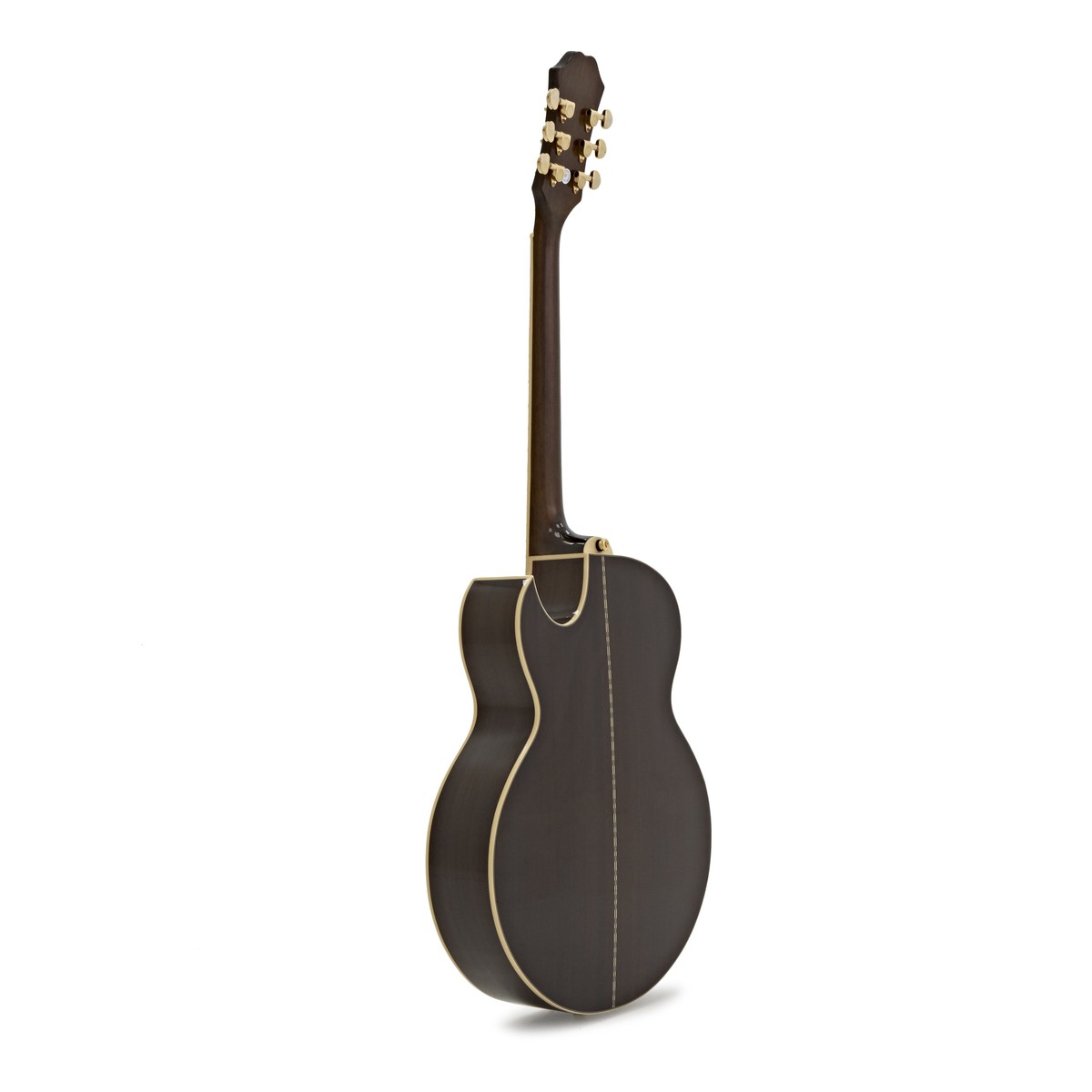 Электроакустическая гитара Epiphone PR-5E предлагает прекрасную играбельность, отличный вид, насыщенный звук и регуляторы тембра. PR-5E сделана из высококачественной древесины, дека имеет глубокий вырез Florentine. На гитаре установлены замечательный активный эквалайзер и преамп Electar Labs с пьезо-звукоснимателем. Верхняя дека сделана из древесины ели, задняя дека и обечайка - из древесины махагони, тонкий гриф из массива махагони (ширина нулевого порожка 4,27 см), накладка грифа и бридж из древесины палисандрового дерева.
