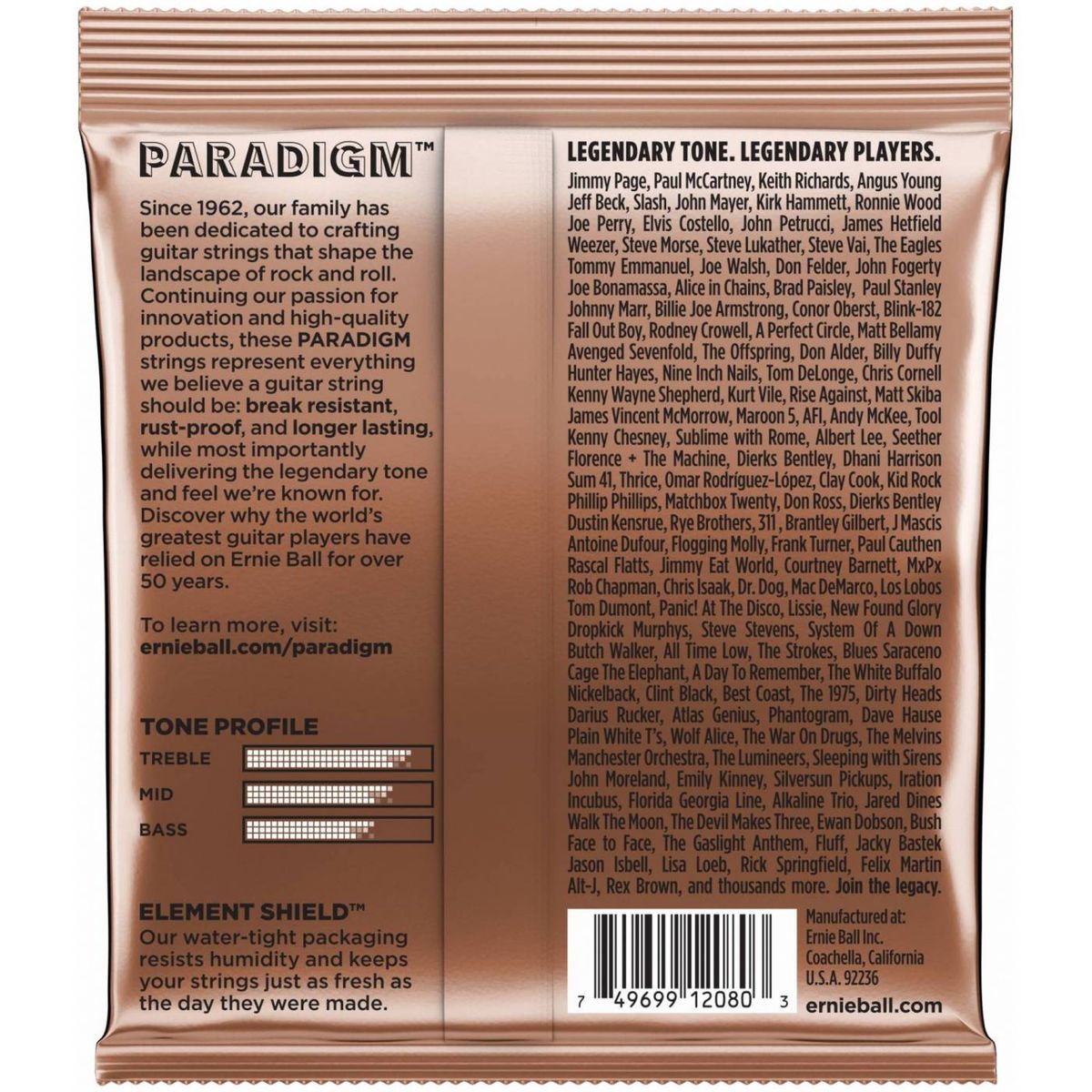 Струны Ernie Ball 2080 серии Paradigm Phosphor Bronze для акустической гитары выполнены из фирменной сверхпрочной стали, которая отличается повышенной растяжимостью и устойчивостью к высоким нагрузкам. Более того струны подвергаются специальной плазменной нанообработке по технологии Everlast, которая обеспечивает дополнительную устойчивость к коррозии и загрязнениям любого типа, влияющим на звучание.