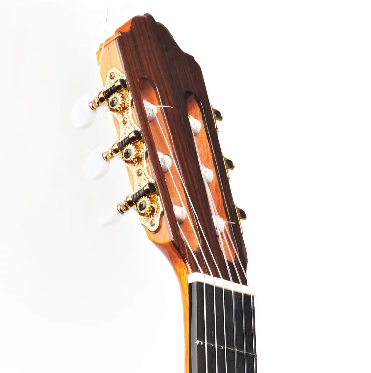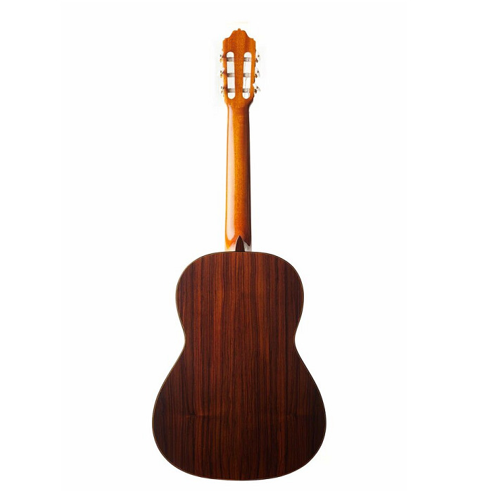 Классическая гитара 4/4, верхняя дека - массив ели, нижняя дека и обечайка - палисандр, гриф - окуме, накладка на гриф - палисандр, цвет натуральный
