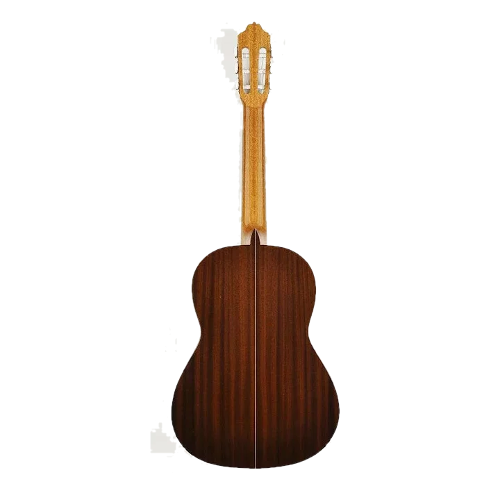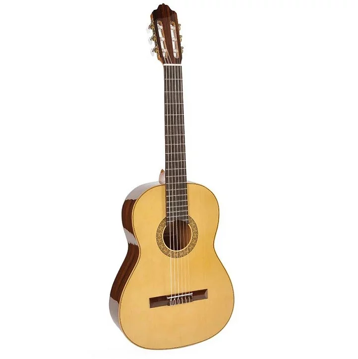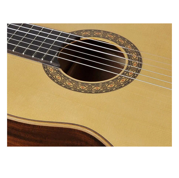 Классическая гитара 4/4, верхняя дека - массив ели, нижняя дека - сапеле, обечайка - сапеле, гриф - окуме, накладка на гриф - палисандр, цвет натуральный.
